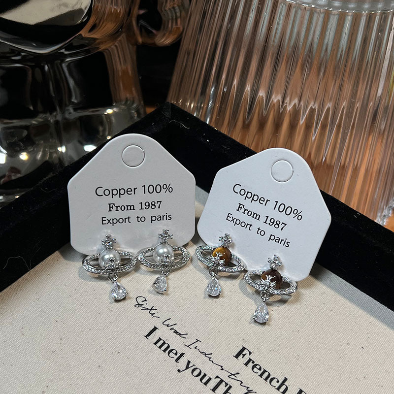 ヨーロッパとアメリカの人気のパールイヤリング宇宙土星マイクロダイヤモンドイヤリング女性用 S925 シルバー針ハイエンドパーソナライズされた人気のイヤリング