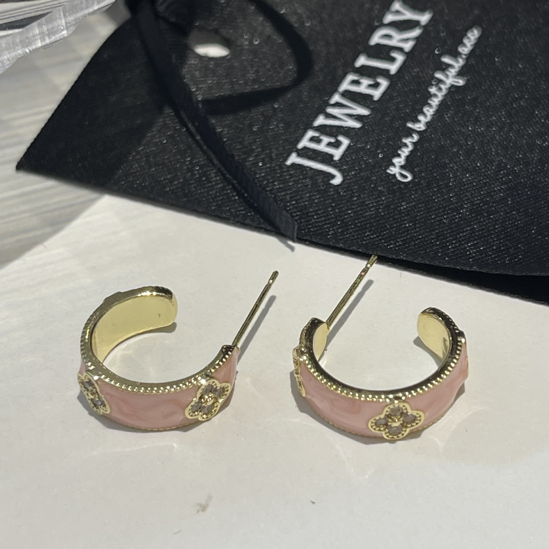 抖音同款初春新品C字粉色皮镶钻耳环S925银针轻奢风气质时尚耳环