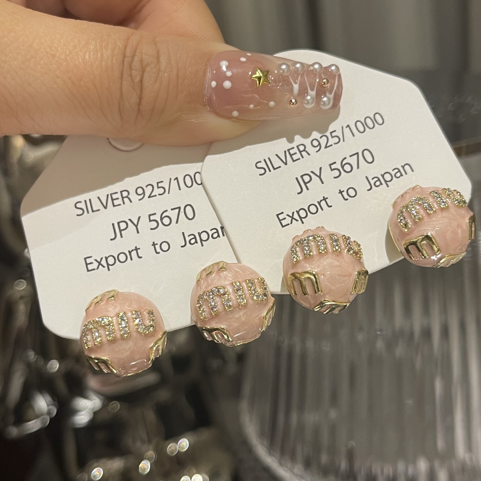 真珠のピンクのアルファベットの丸いボールのピアスS925銀の針の淑女の気質の百合の小さい清新なイヤリングの女性のファッションの百合