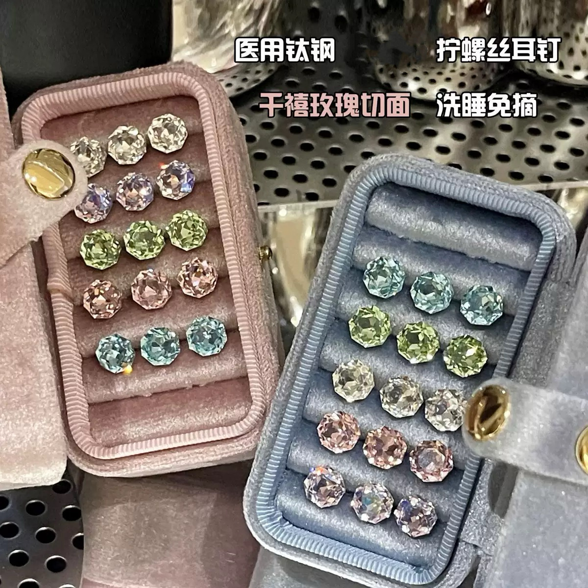 ミレニアムローズカットダイヤモンド耳骨ネイルチタン鋼多用途敏感ラウンドケーキ耳栓フラッシュ Huazi イヤリング Xiaohongshu ホット販売