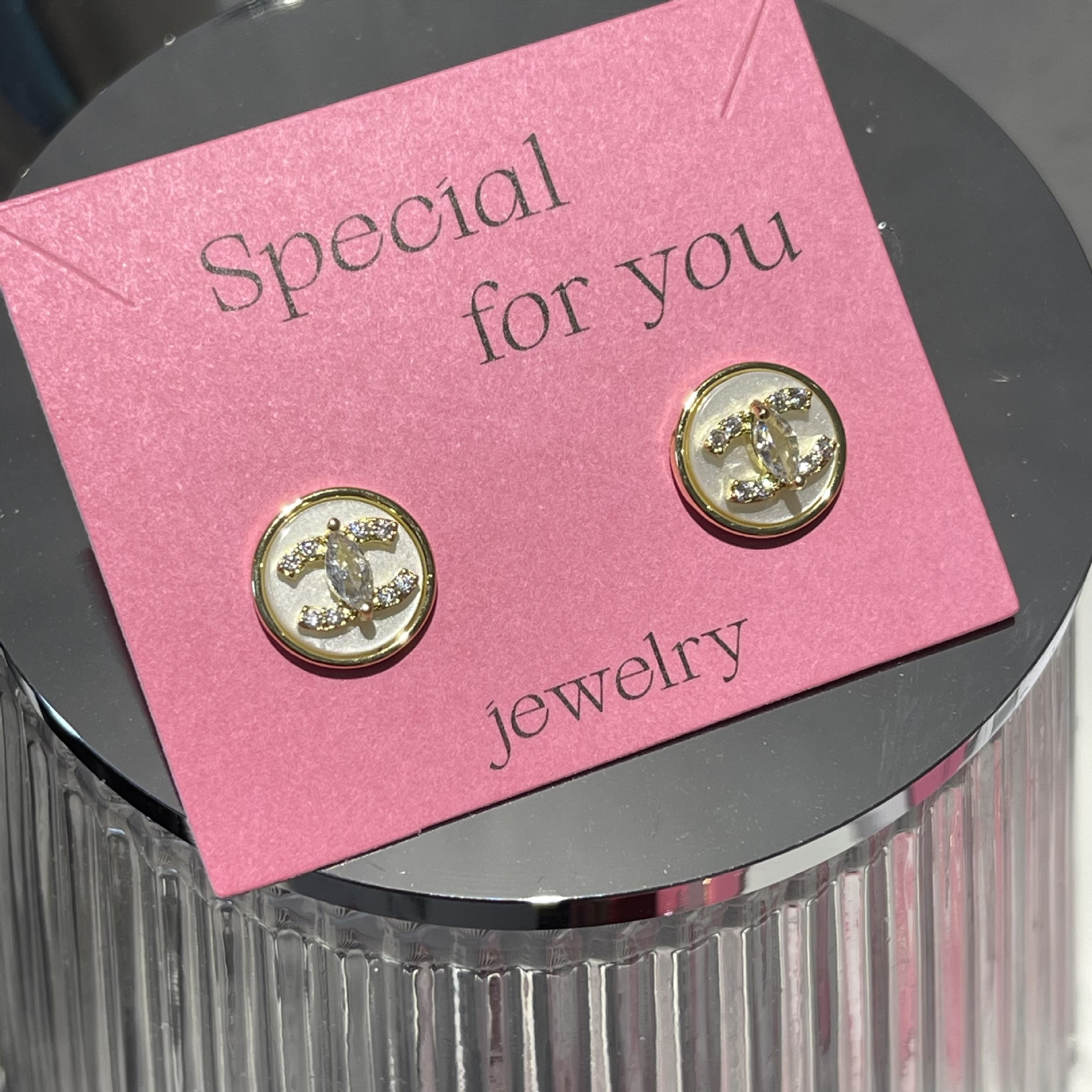圆形树脂交叉锆石耳钉S925银针精致百搭圆耳钉时尚气质淑女耳环