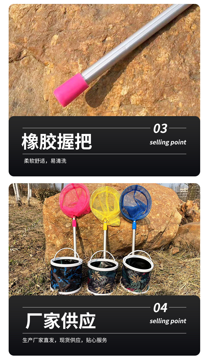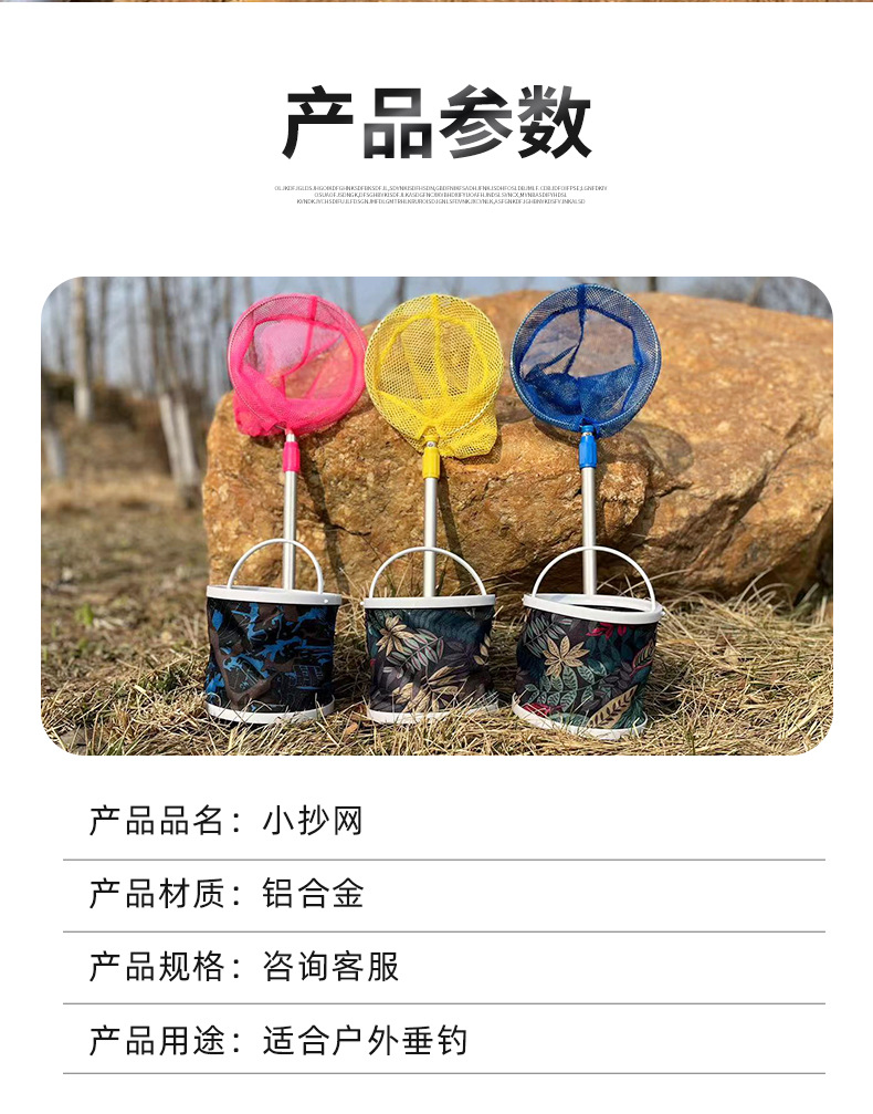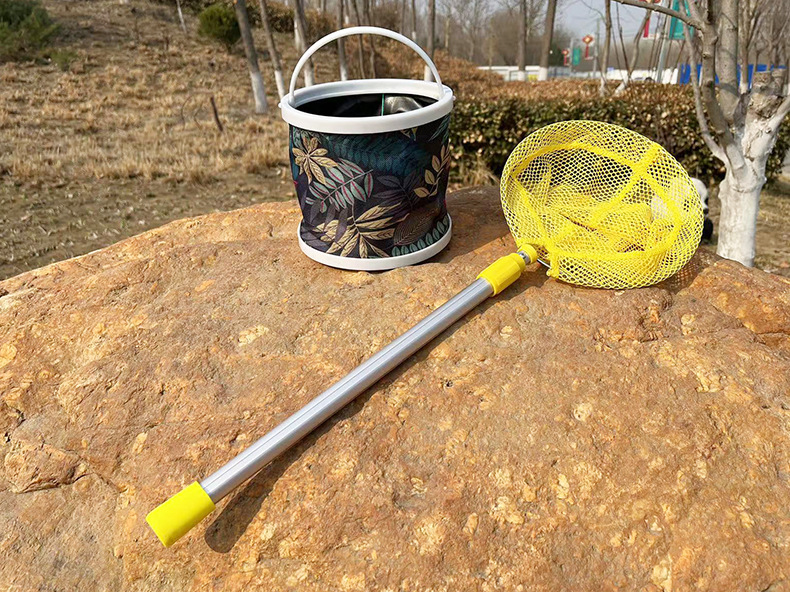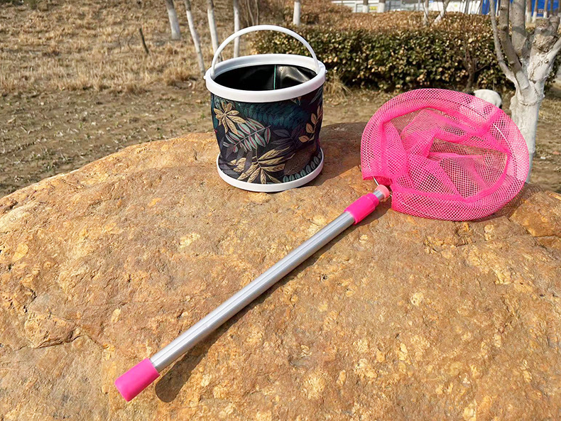 卸売りアルミ合金伸縮すくい魚網兜屋外ビーチ玩具捕虫網折り畳み小バケツミニ模造網