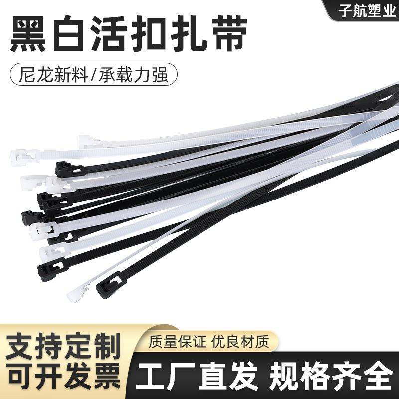 源工場卸売り白黒ナイロンバンドのバックルバンドは再利用できます。