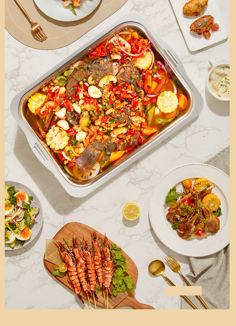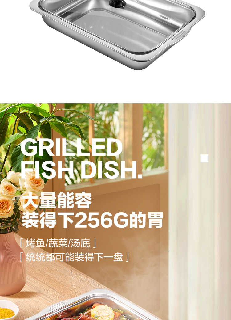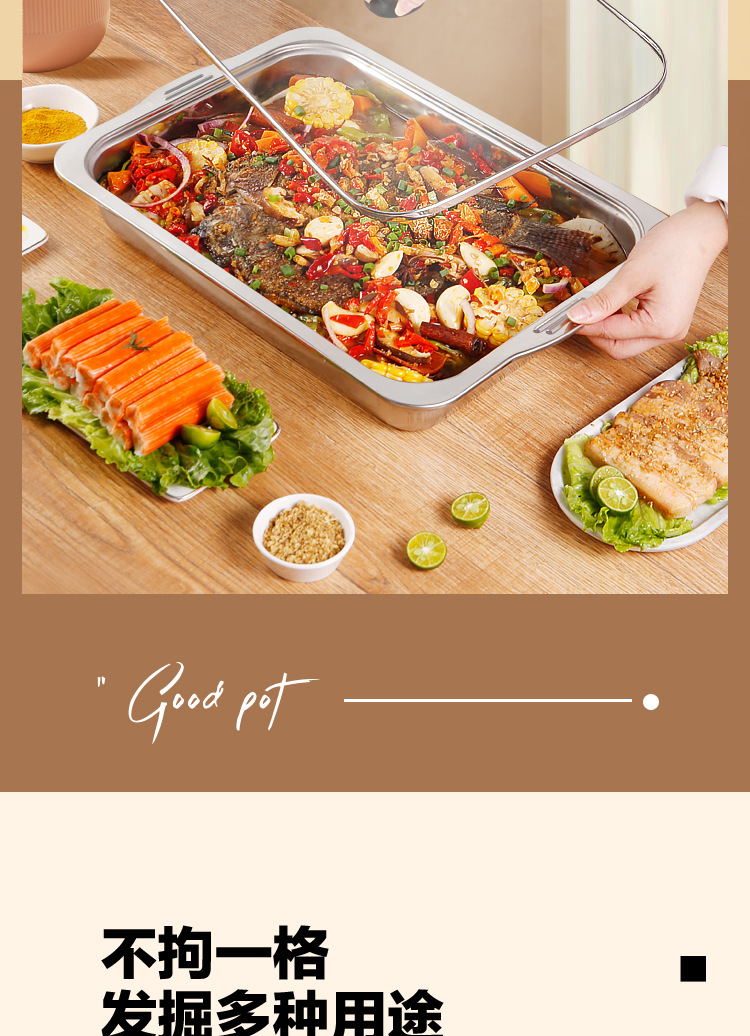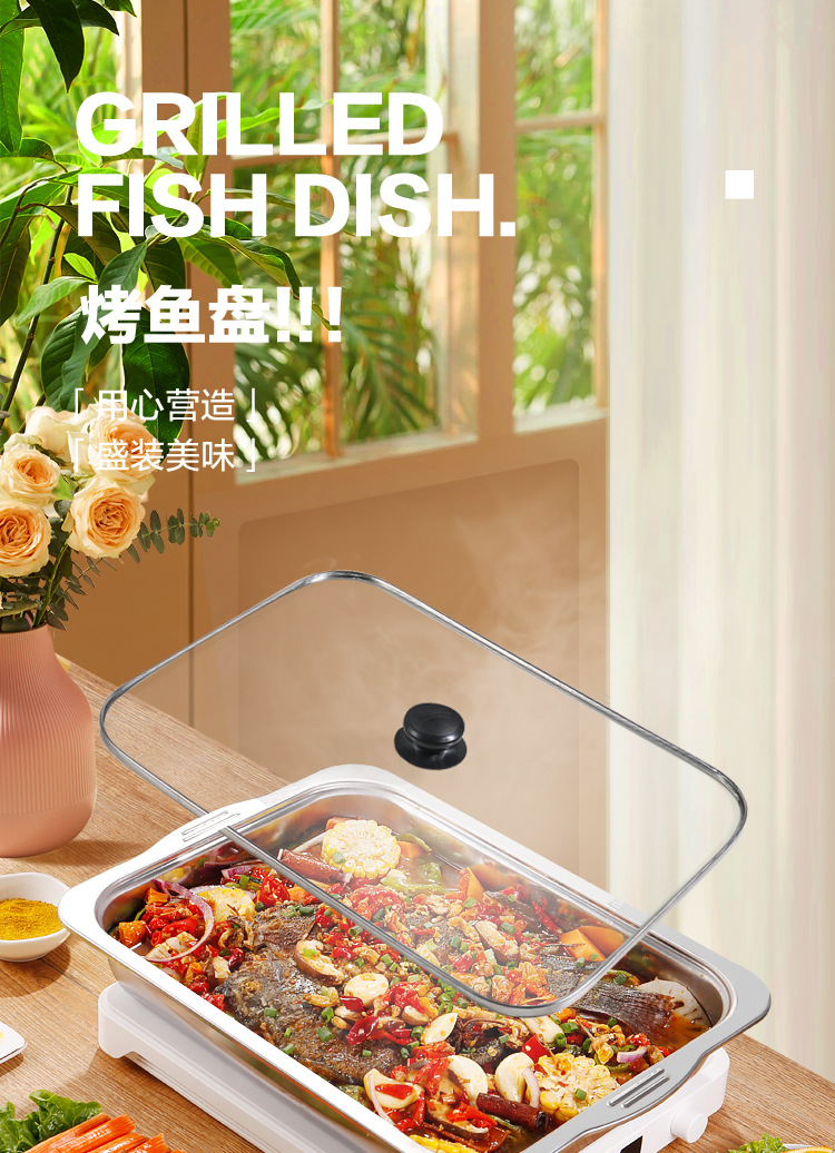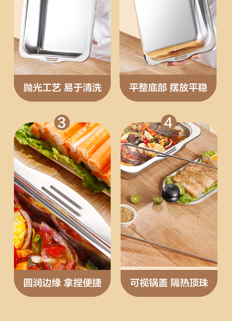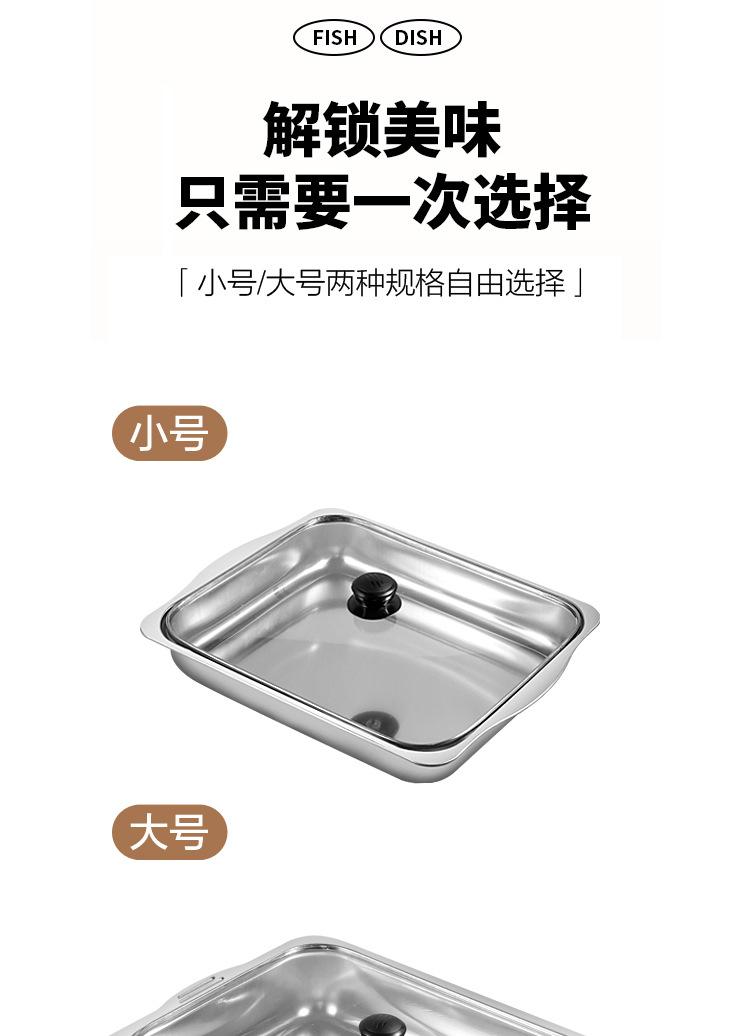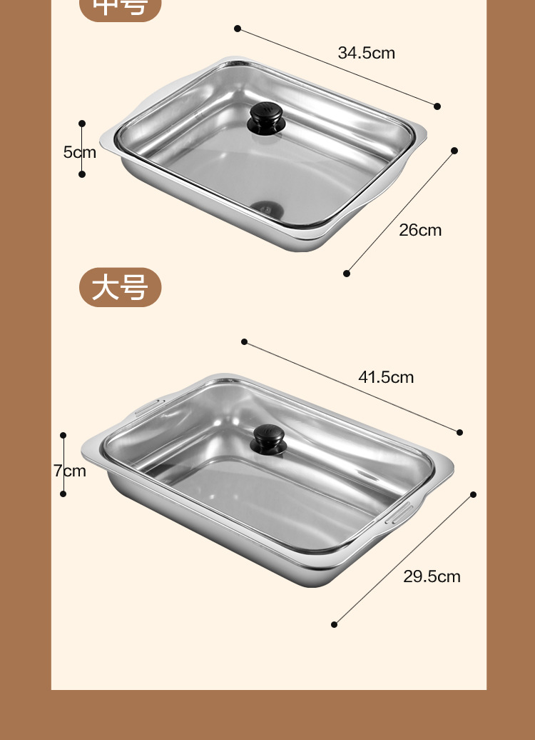ステンレス製厚手両耳焼き魚皿、蓋と耳付き、業務用多目的皿、電磁調理器・ガスコンロ兼用