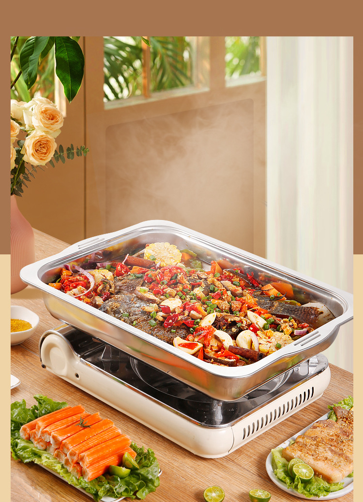 ステンレス製クロスボーダー長方形折りたたみ脚付きビュッフェストーブ保温炉アルコールストーブホテル設備朝食