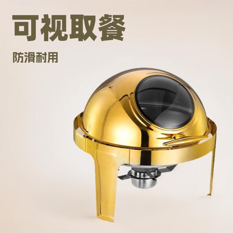 ステンレス大型ガラス自助食堂炉ホテル食品保温布菲炉可視油圧カバークロスボーダー金色食堂炉
