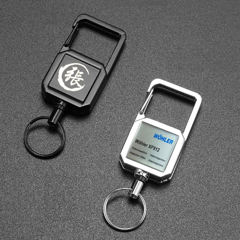 YLKOイージーロープフルメタルスクエアキーホルダー、エポキシ樹脂パターンロゴ入り伸縮式登山用カラビナ、金属製カスタムバックル