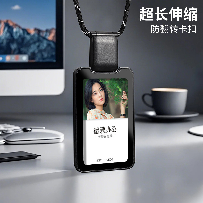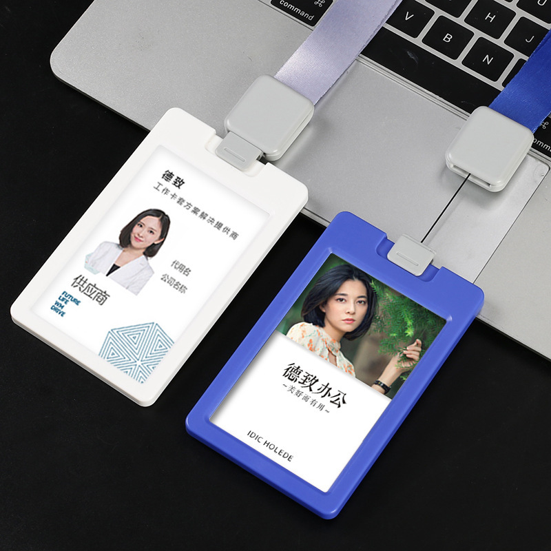 イージーピックル高級勤務証明書カードホルダー、バッジ伸縮バックル、ストラップ、ハードシェルカードホルダー、インカードホルダー