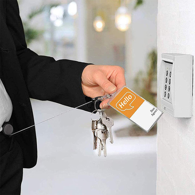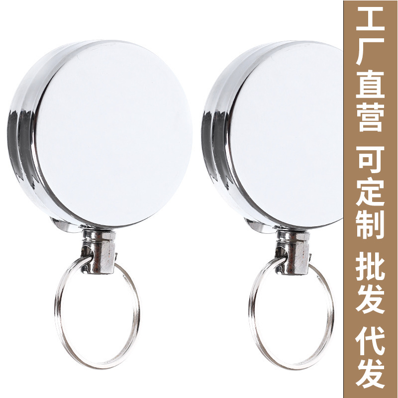 国境を越えて人気のある4センチの全金属の引きやすいワイヤーロープの盗難防止伸縮防止ボタンのキーホルダーが引きやすい