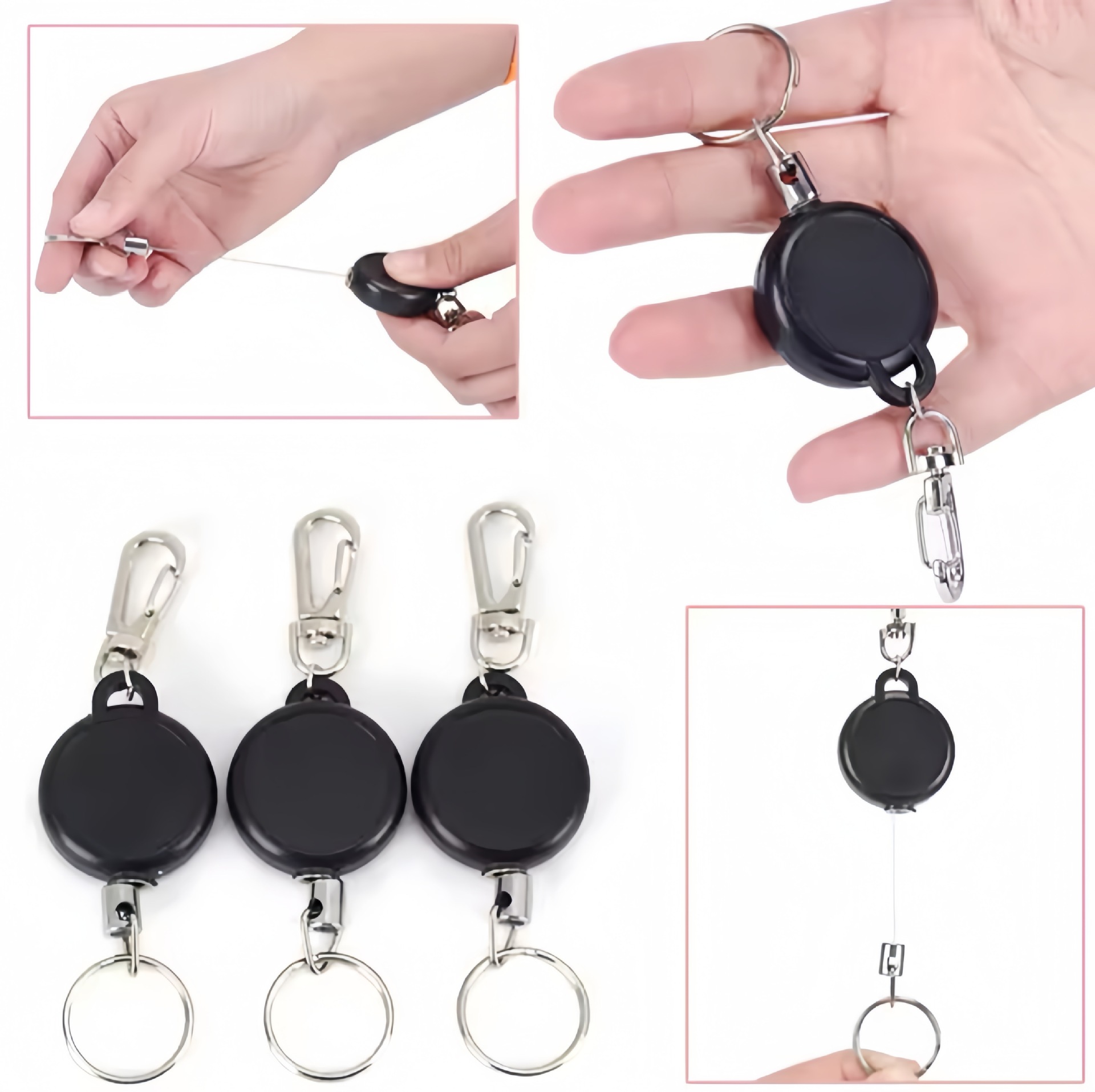 H56超小型スプリングバック伸縮ロープキーストラップリング盗難防止キーチェーンキーホルダーバックル