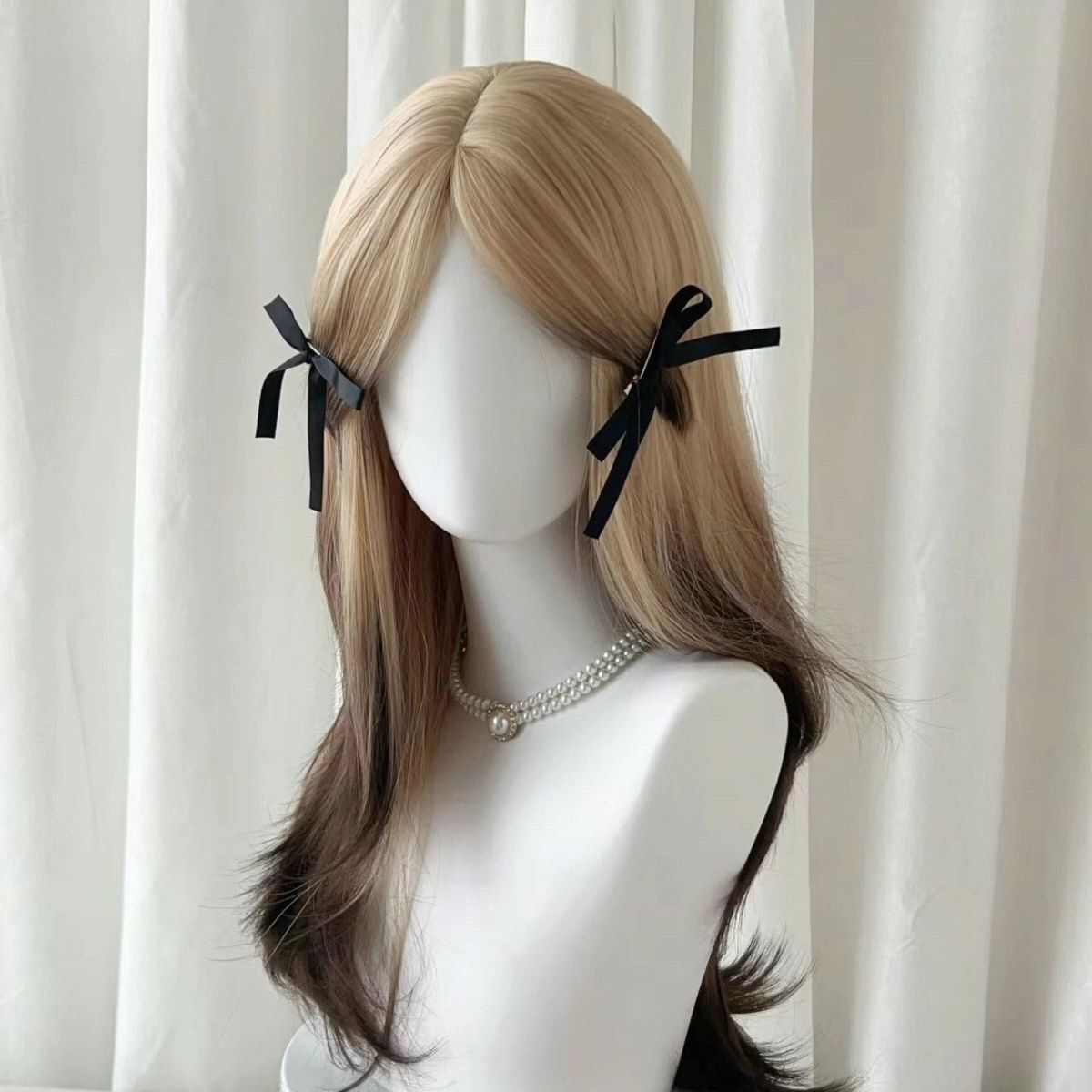 メーカーのソースは昇降可能なかつらスタンドの白いレースの髪の塊をショーウインドーの展示スタンドに置いて高さを調節します。