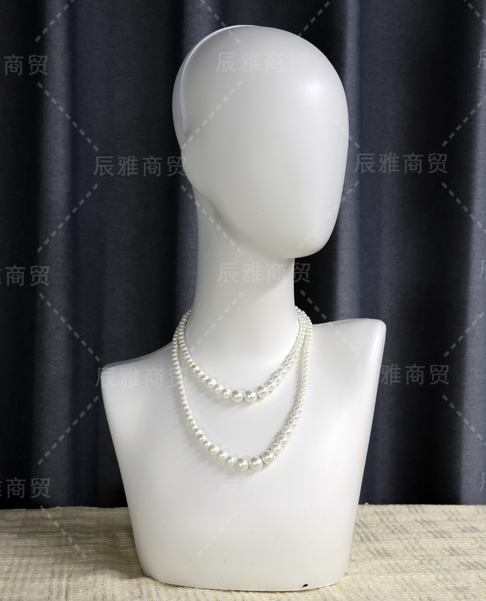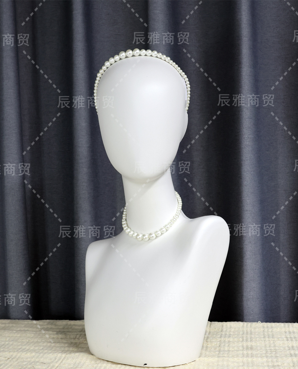 メーカー直販の白い肩付きモデルの頭に偽の女性マフラーのアクセサリーがかつらの模型の頭の道具を展示しています。