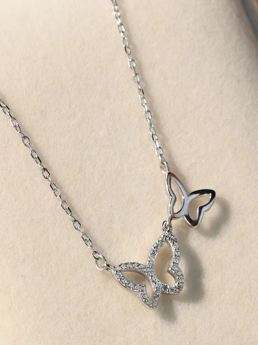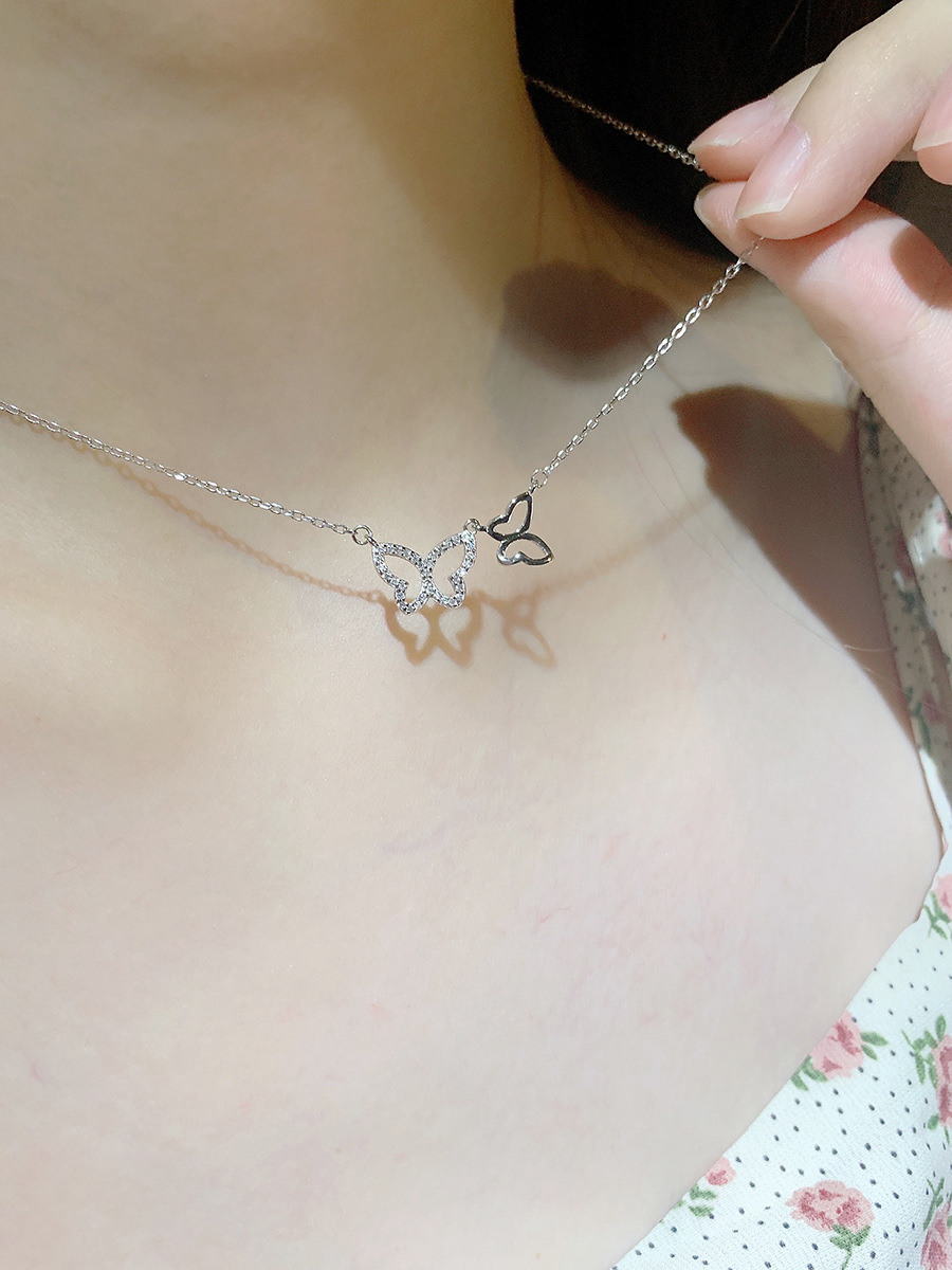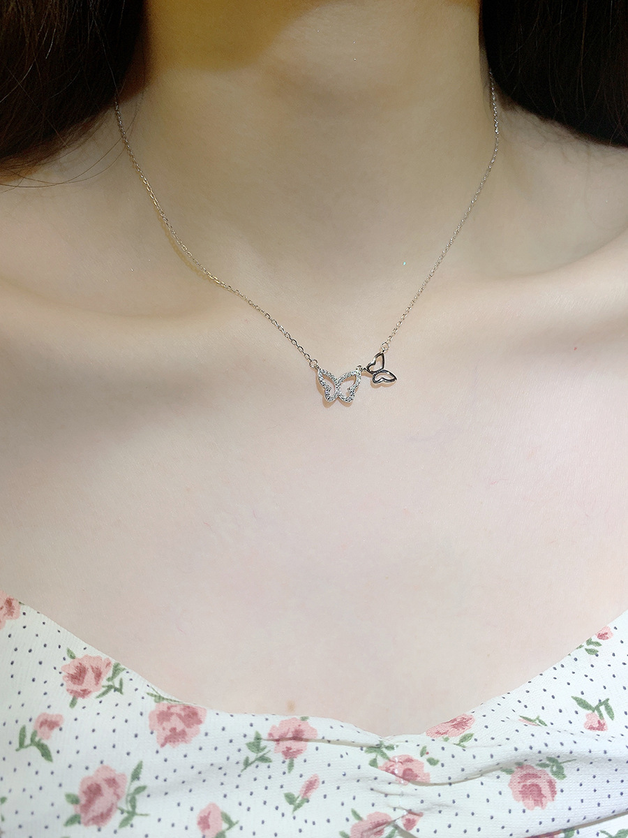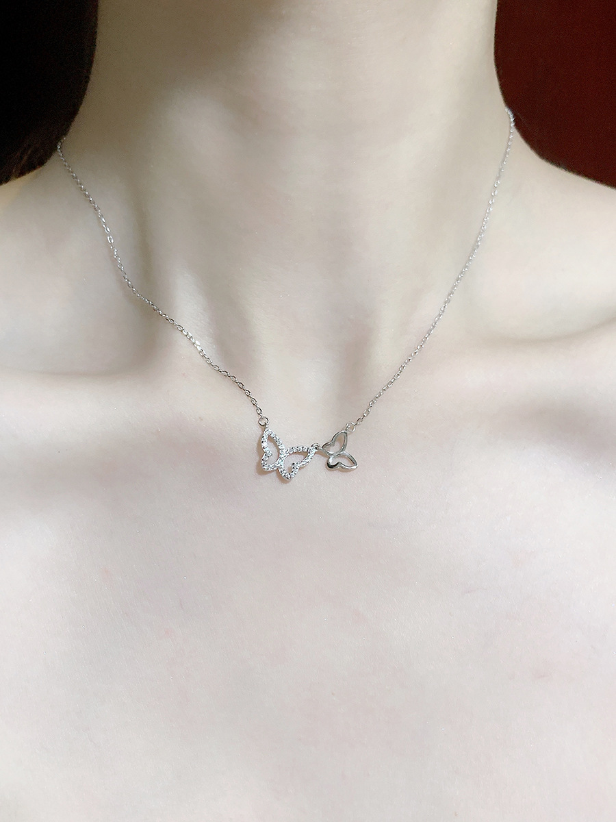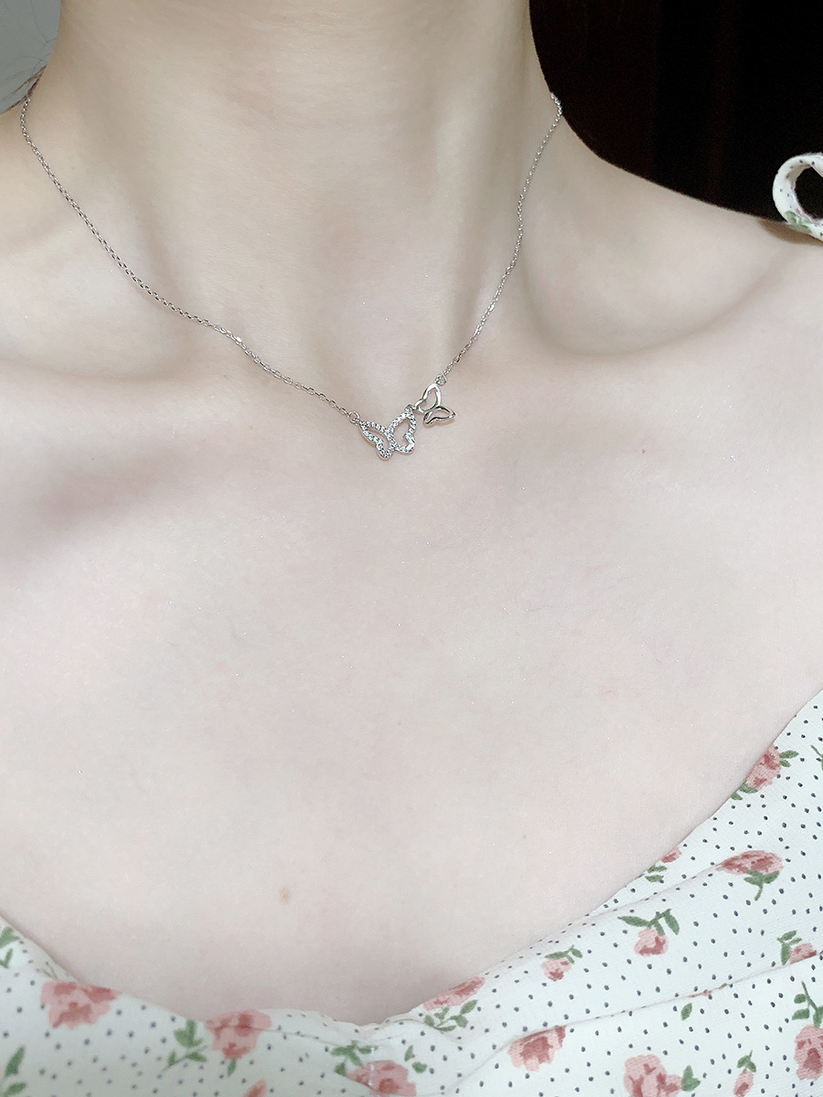 新型の双蝶のネックレスの鎖はダイヤモンドを持って清新で甘い美人の日韓の薄い風の気質の百合の首飾りの卸売りをします。