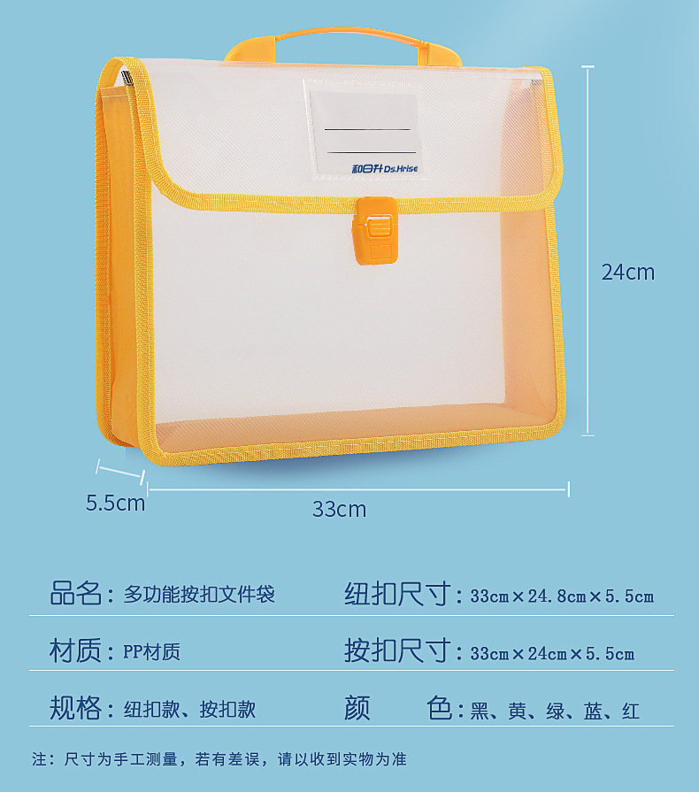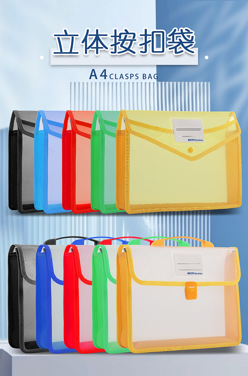 Fca4厚い透明ppボタンを押して、立体ファイルバッグを広げます。