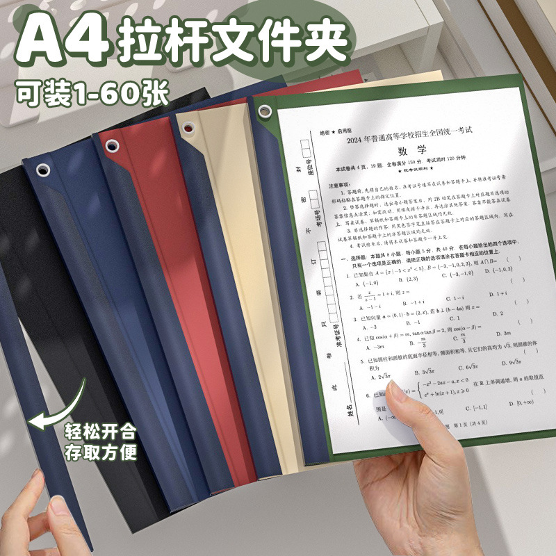 A4侧拉旋转抽杆夹复古经典色加厚耐用收纳册全新款式文件夹