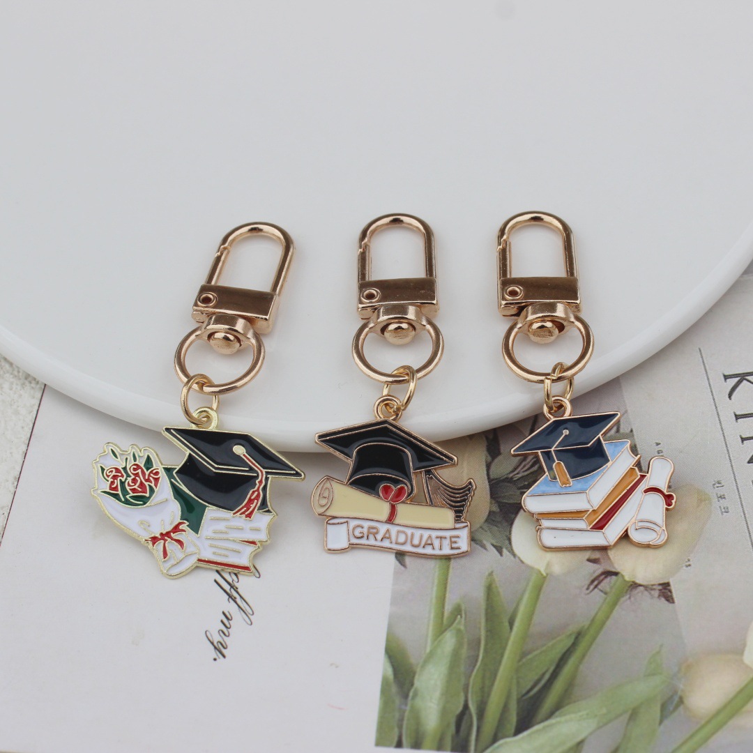 跨境新款毕业帽毕业季学士帽滴油钥匙扣挂件合金项链吊坠背包挂饰