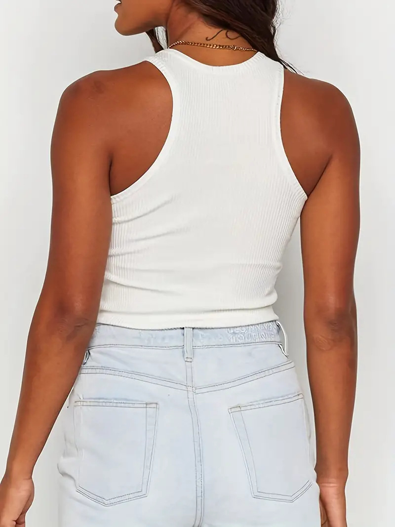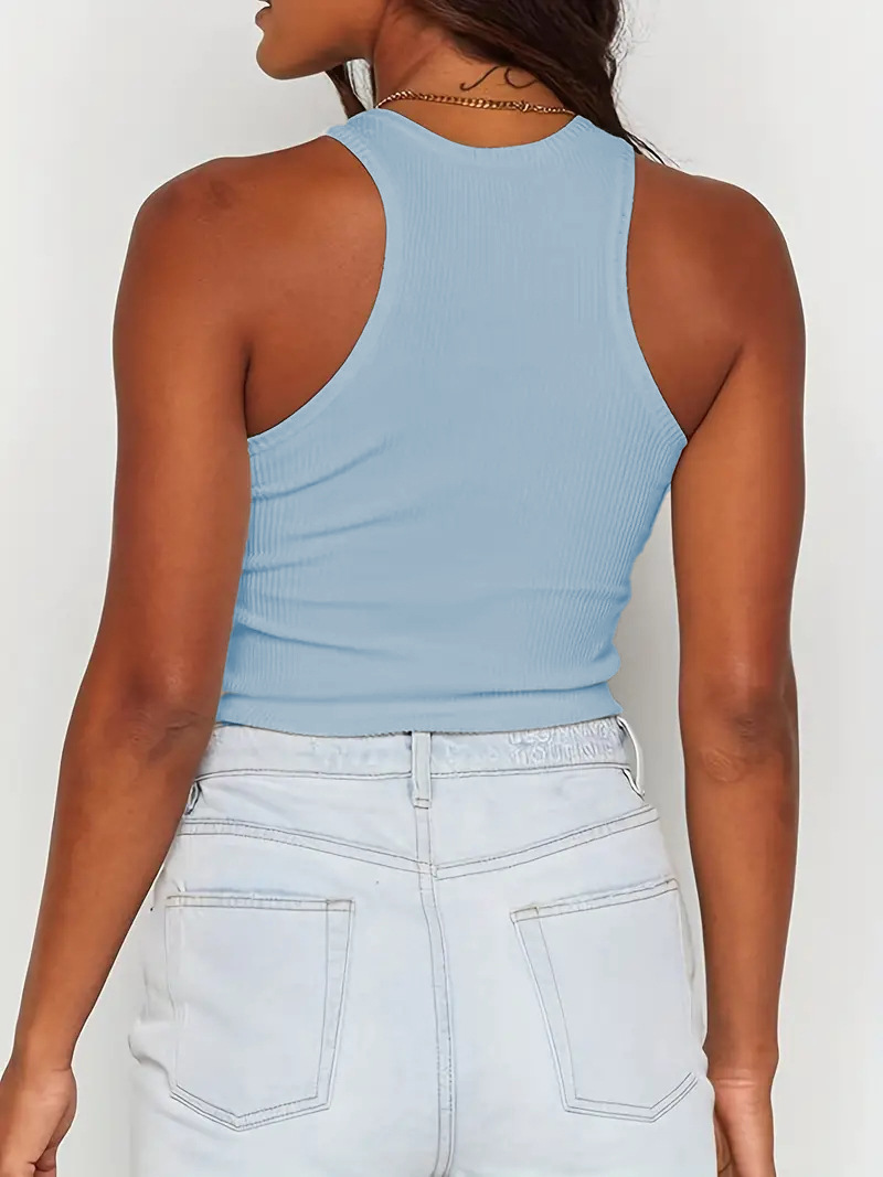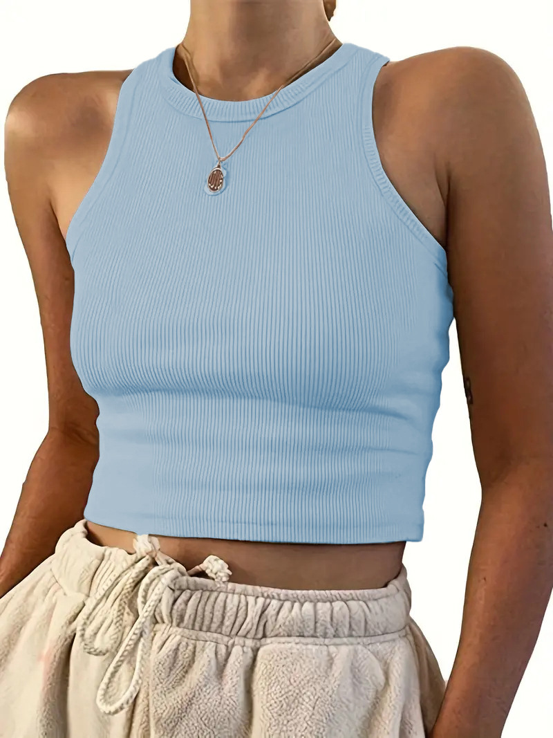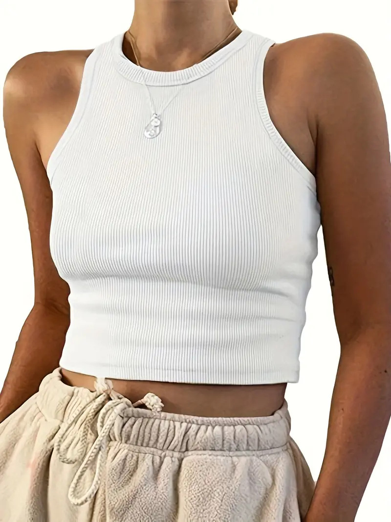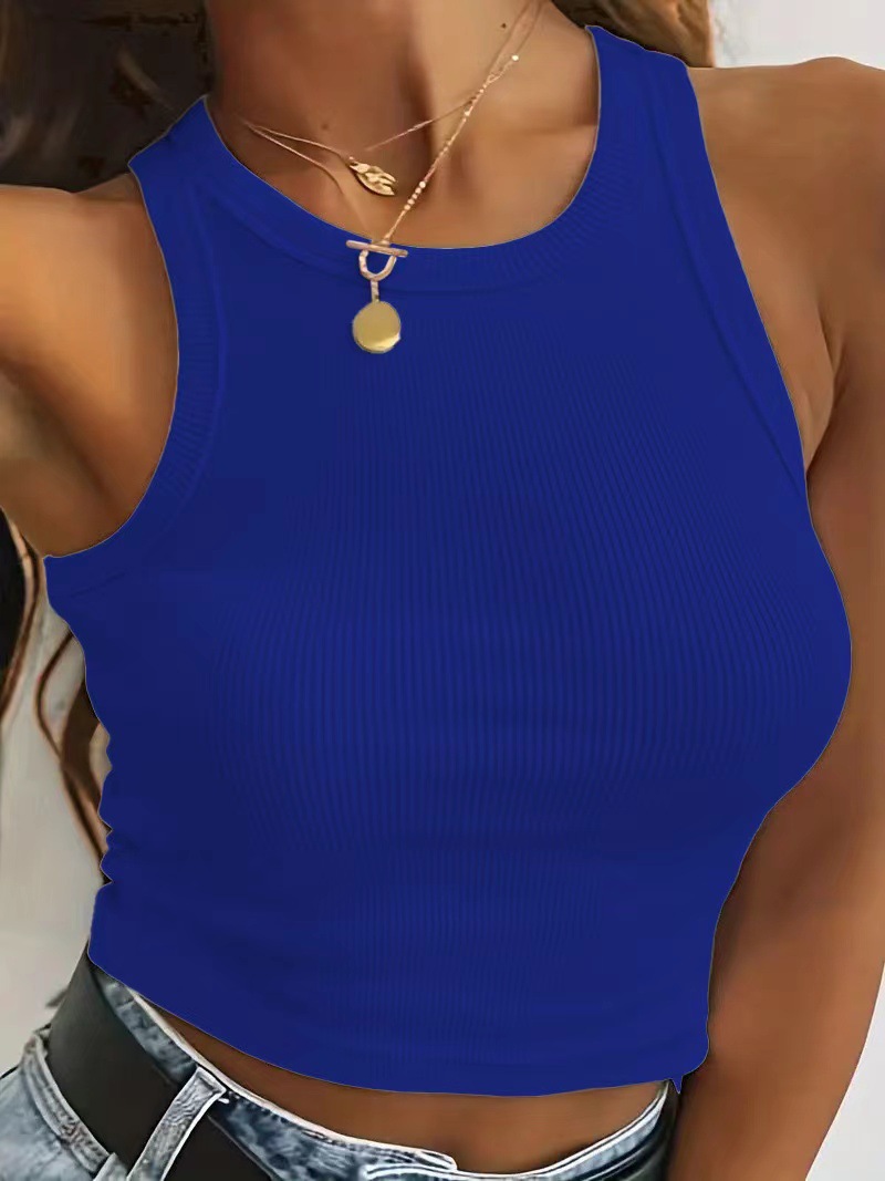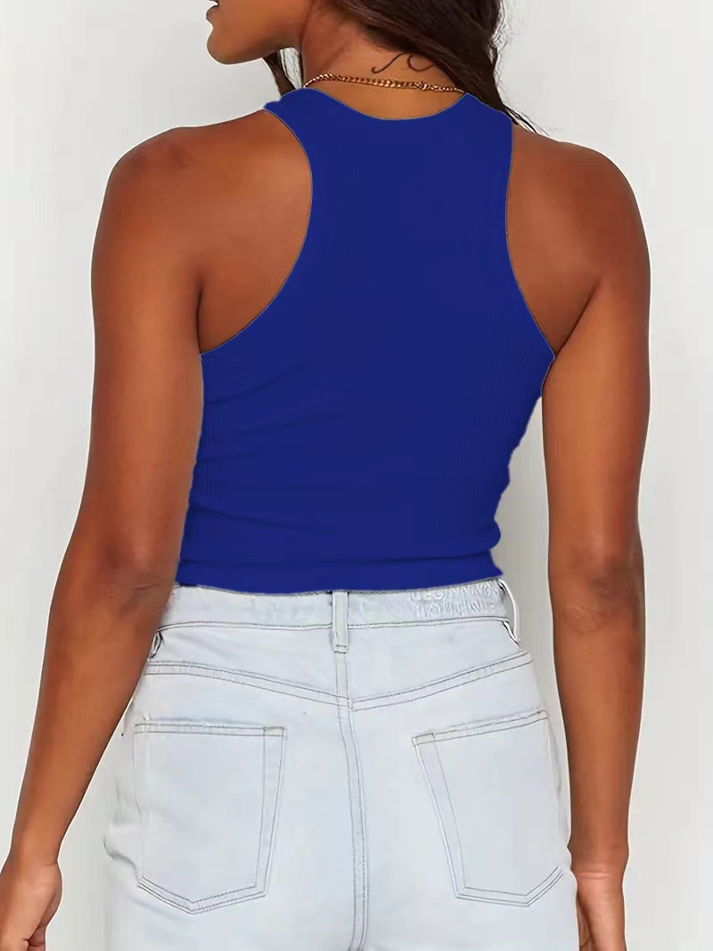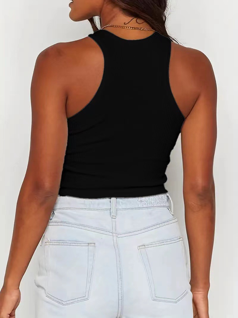 2024アマゾン速売通クロスボーダー欧米女装春夏ショートモデル純色ねじ袖なしtシャツベスト