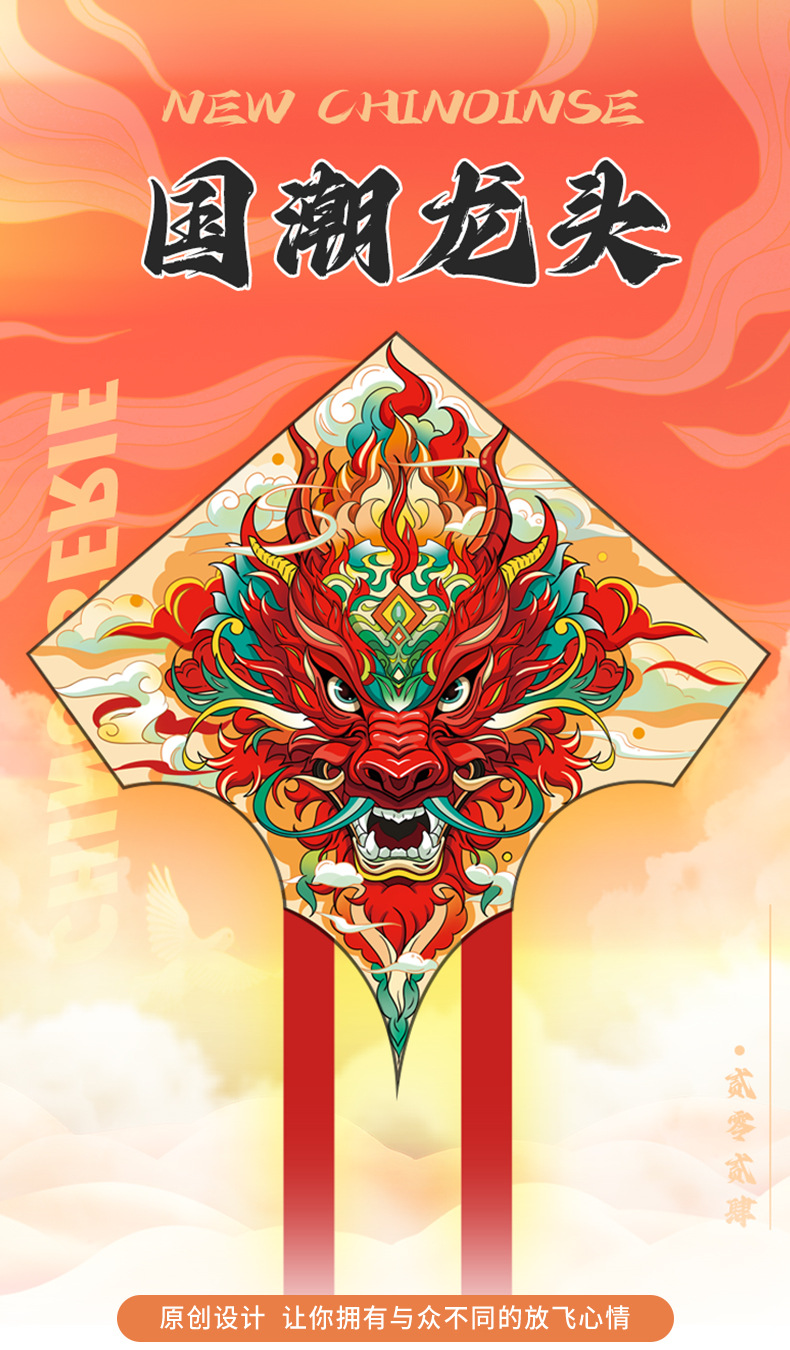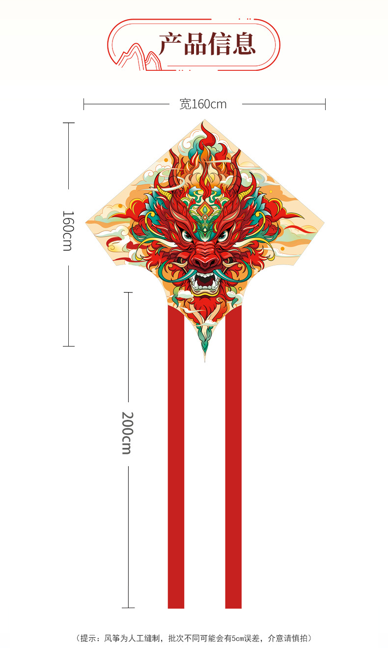 濰坊凧卸売 新型 国潮 龍獅凧 大人用 大型 特大凧 広場露店用