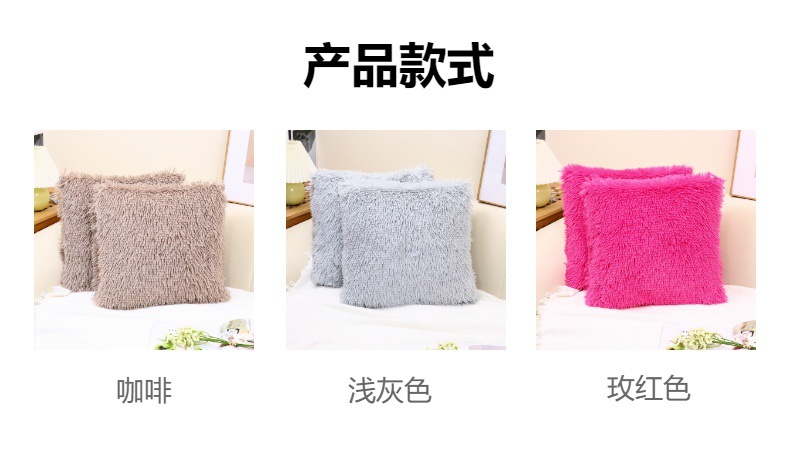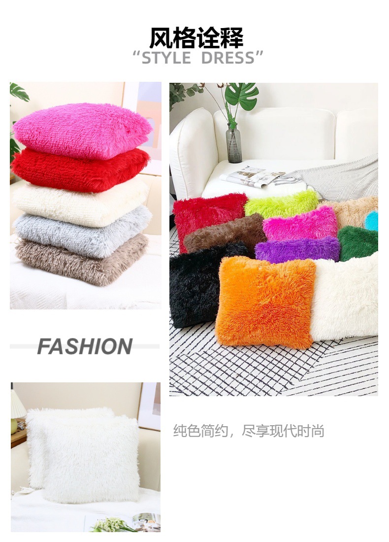 现货一件代发长毛绒纯色海狮绒沙发靠背国外商超方枕方垫皮子抱枕