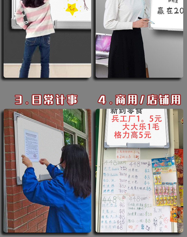 サイズ ホワイトボード 30*40 (手持ちまたは吊り下げ可能、19 個セット),ホワイトボード 40*60 (手持ちまたは吊り下げ可能、19 個セット),ホワイトボード 50*70 (手持ちまたは吊り下げ可能、19 個セット),ホワイトボード 60*90 (手持ちまたは吊り下げ可能、19 個セット)