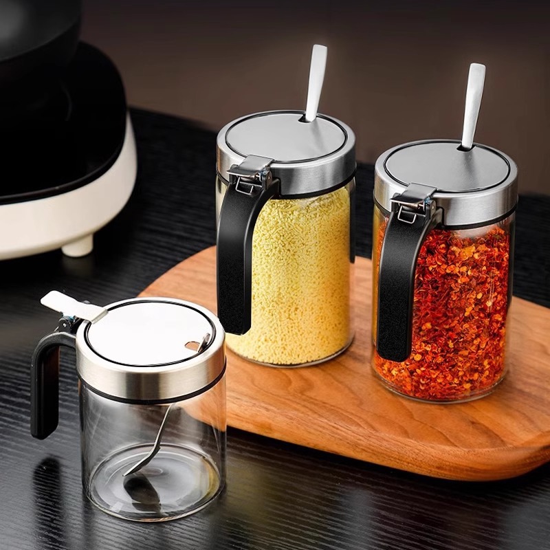 ラー油専用瓶、レストラン調味料瓶、密封ガラス調味料箱、スプーン蓋一体型調味料瓶、MSG塩保存