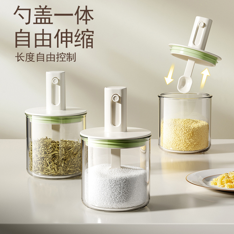 伸縮調味料缶スプーン蓋一体調味料箱家庭用キッチン調味料分注瓶オイルポット密封塩缶調味料缶