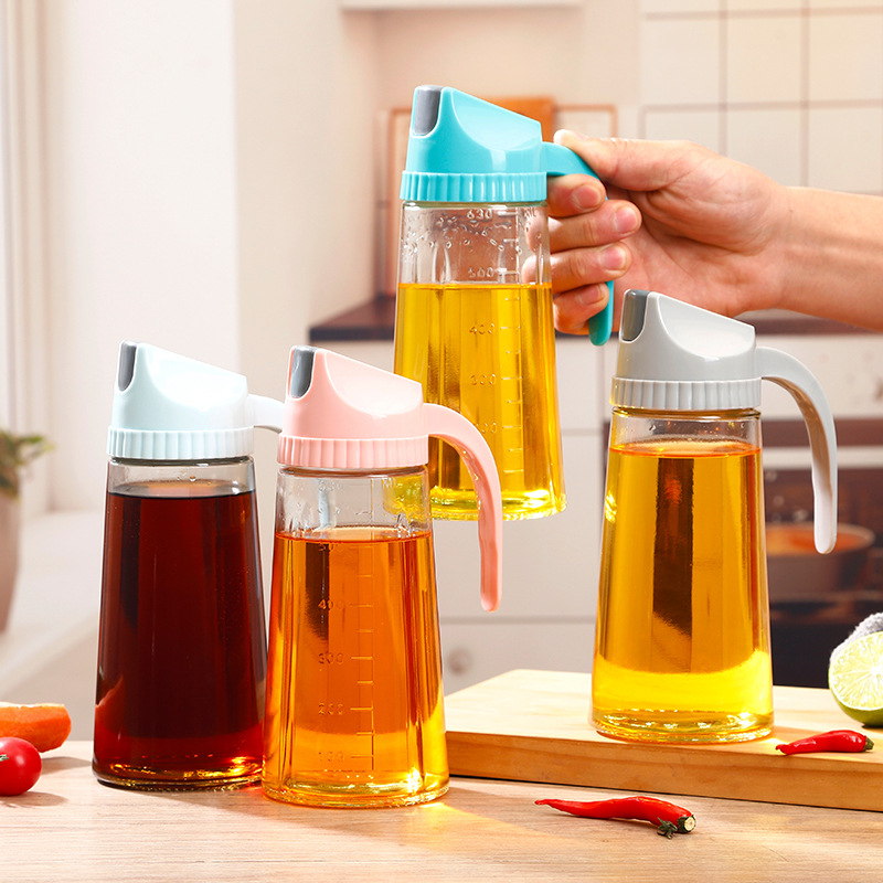新しい手握りガラス油ポット自動開閉調味料瓶キッチン家庭用食用醤油酢ポット大容量卸売り