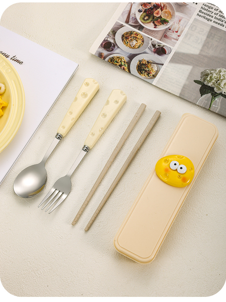 爆発的にかわいいinsチーズスプーンフォーク箸三点セット学生児童携帯食器収納ケースセット