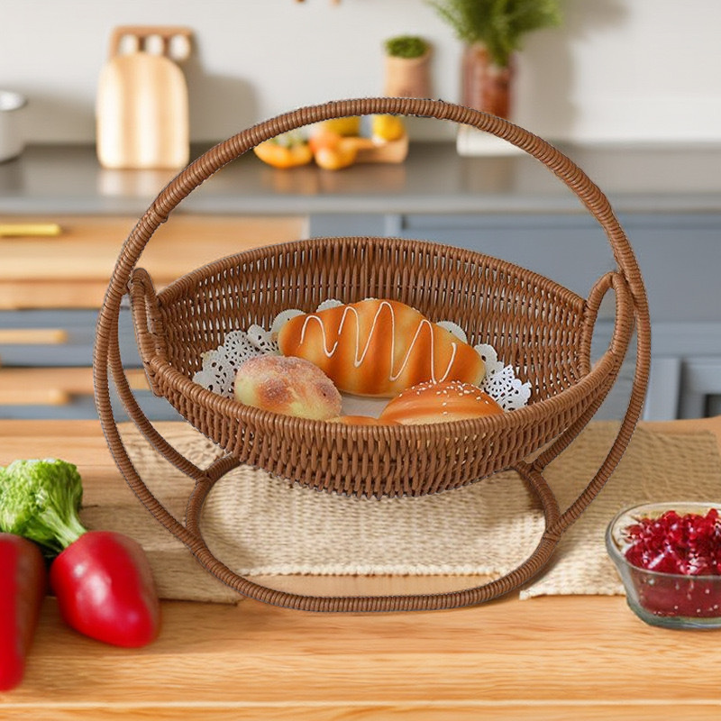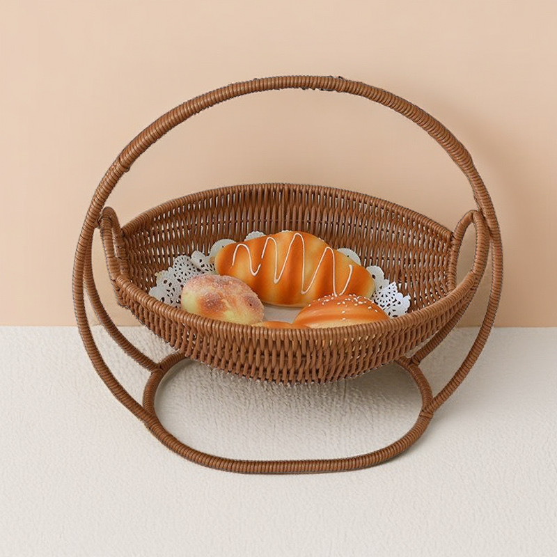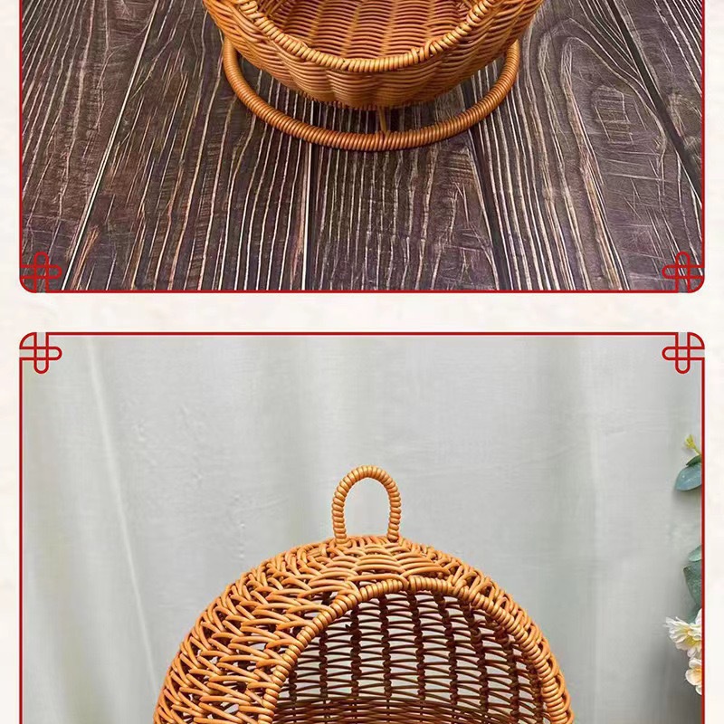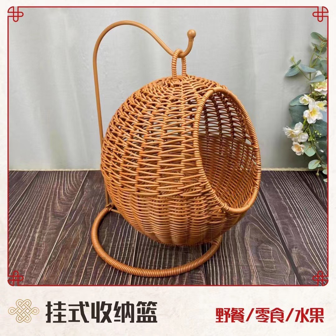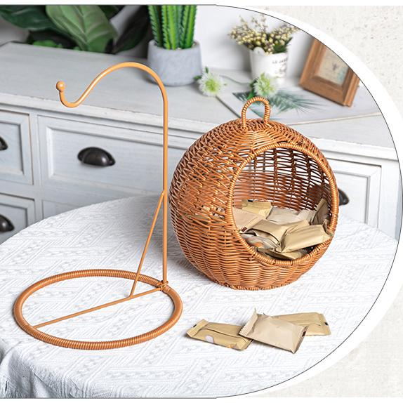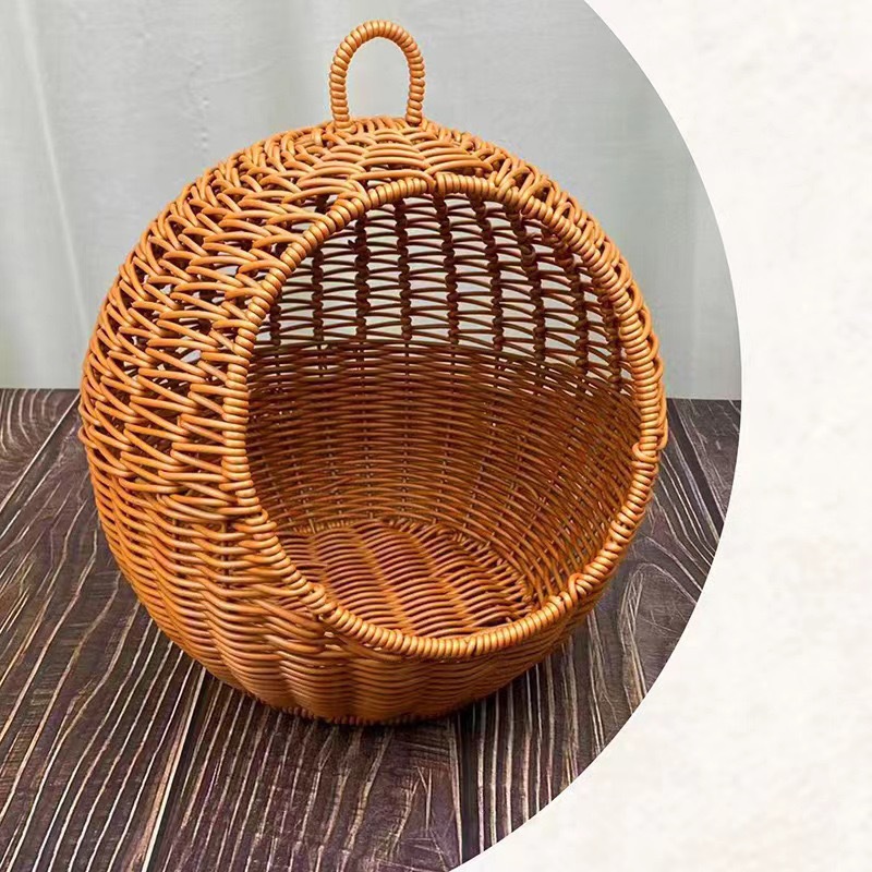 模造籐手織り収納バスケットラウンドハンギングフルーツバスケットホームホテルスナックドライフルーツ収納バスケット猫の巣バスケット