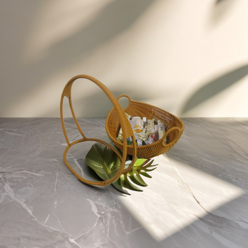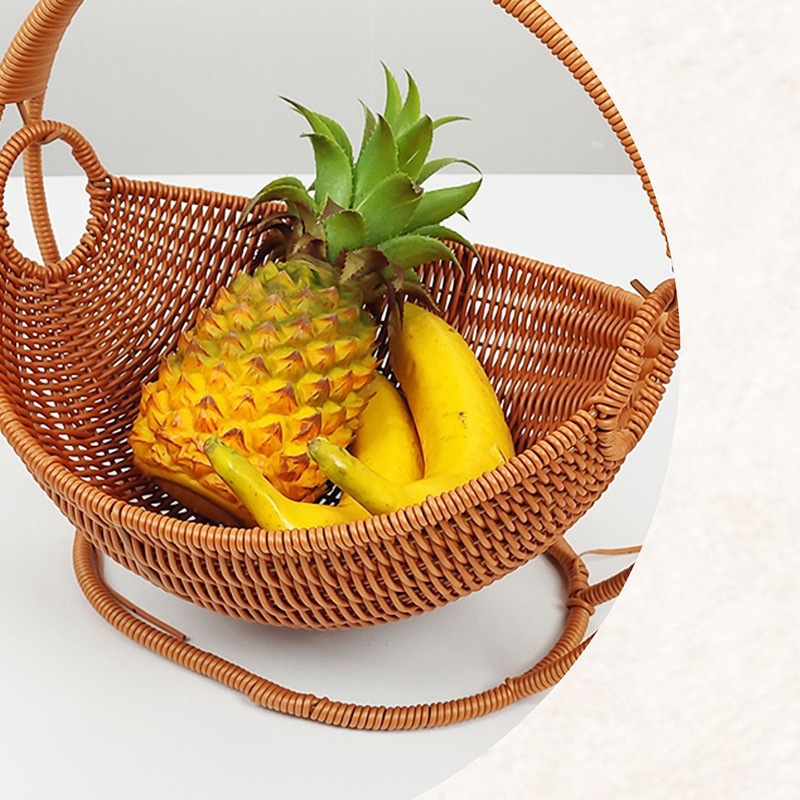 模造籐編みクリエイティブホームデスクトップフルーツバスケット、スナックキャンディバスケット、フルーツハンギングバスケット、スナック収納バスケット