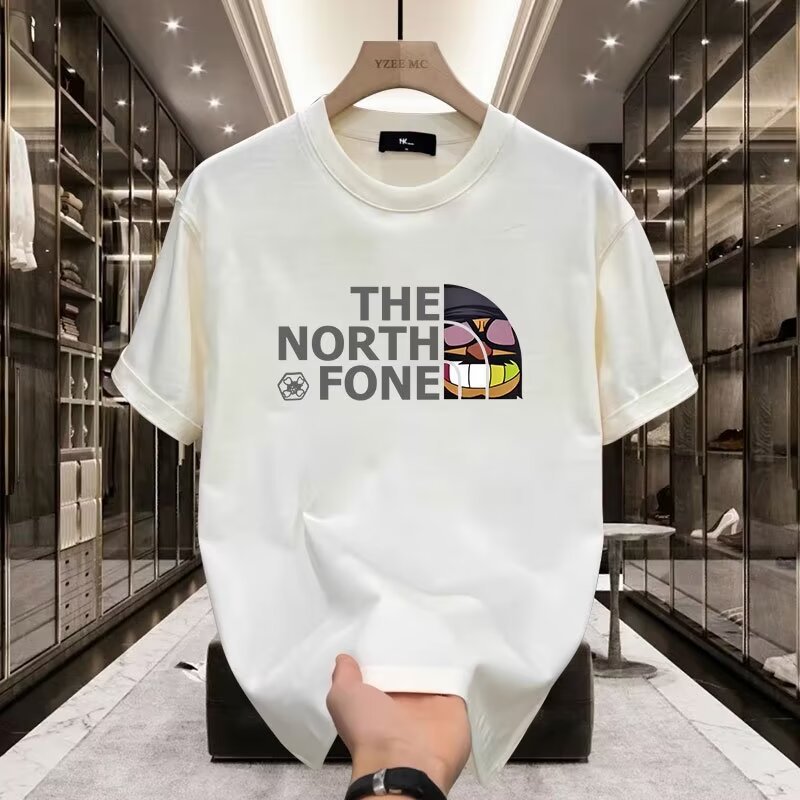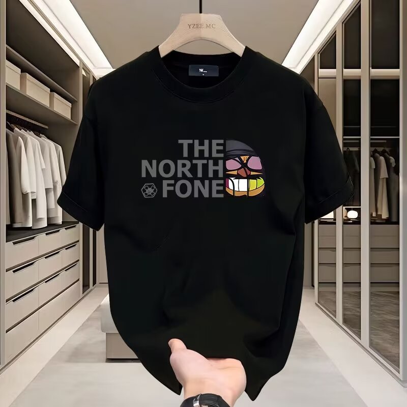 プリントtシャツ半袖メンズ2024新作夏カジュアルトレンド行スリム高級感黒ボトム半袖