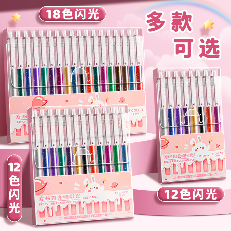 金属色のキラキラ光るジェルペンキラキラ光るハイライトペンの手帳中性ペン子供用変色星フラッシュペン