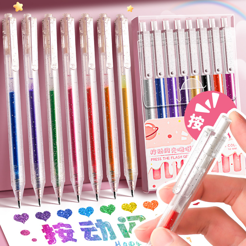 彩色闪光笔啫喱发光亮晶晶流沙银光变色做手账的手帐专用珠光标记