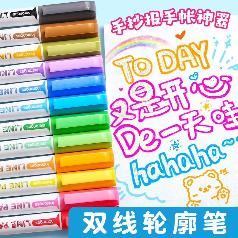 ダブルラインアウトラインペン 24 色フラッシュ手書き新聞ハンドブック特別な 2 色蛍光マーカーマーク学生と子供