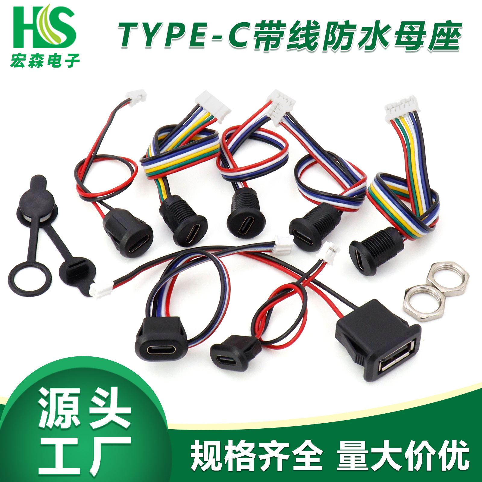 TYPE-C 2PINコード付き防水母座PH2.0端子ナットロックプレート付きtypec母座防水キャップ付き