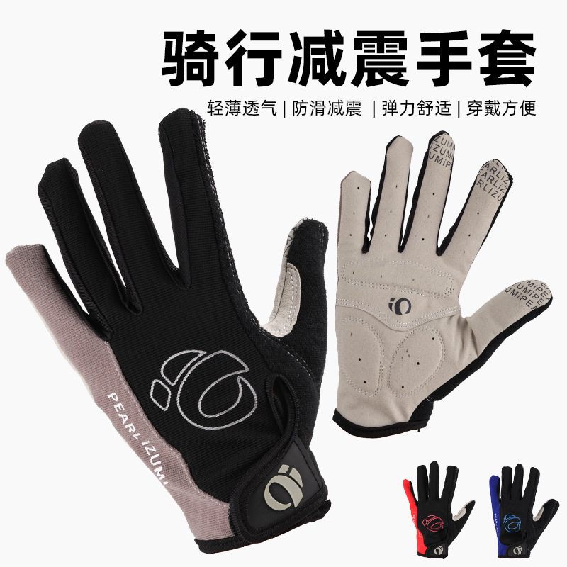 一字米全指手套 自行车公路车秋冬单车防震手套 骑行硅胶长指手套
