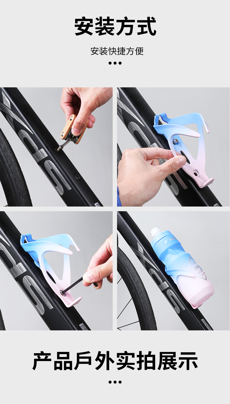 自転車の水筒棚マウンテンバイクの屋外騎行装備の一体成型グラデーションの手の感覚の漆の道路の車の水杯の棚