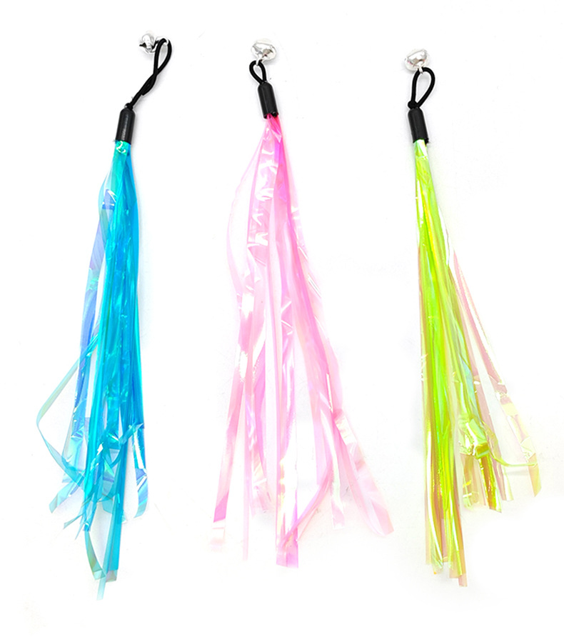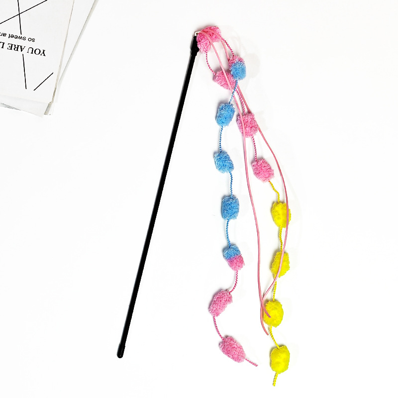 猫をからかう棒猫のおもちゃの虹のぬいぐるみの長い竿は鈴のペットの子猫をかむことに耐えます。