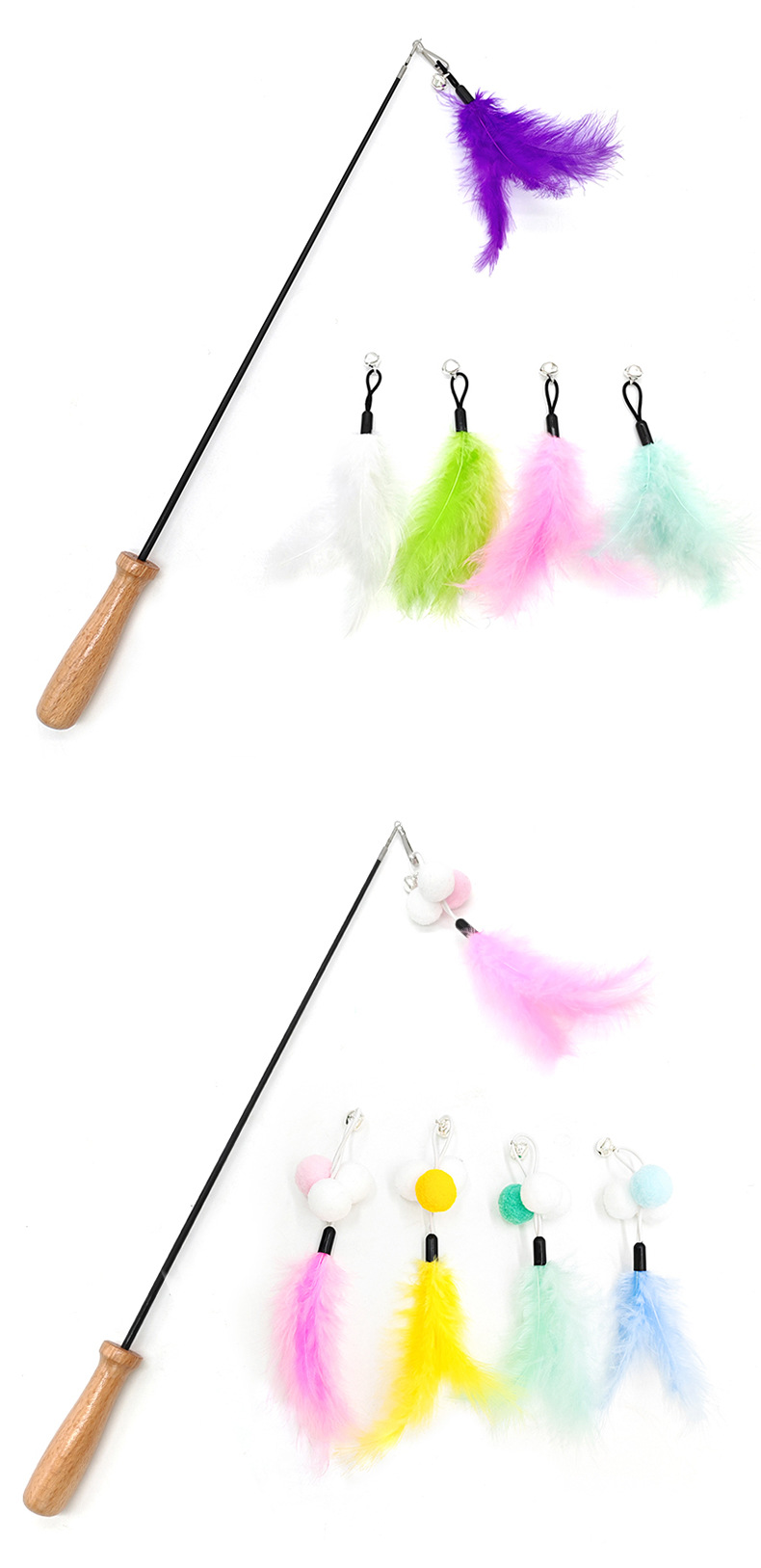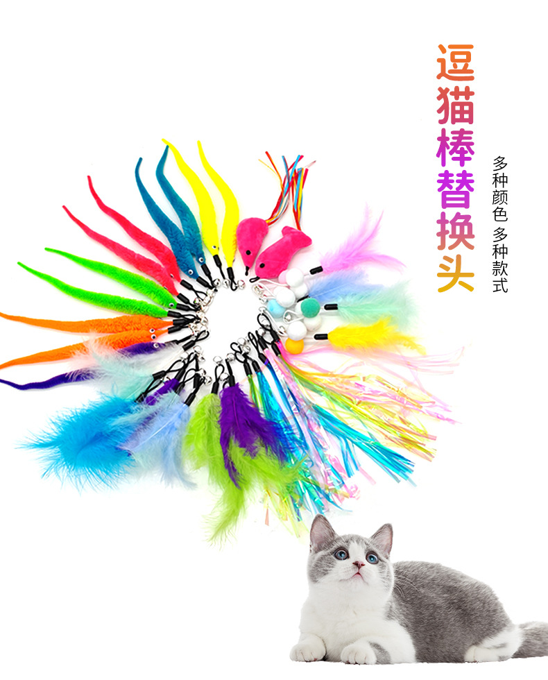 メーカー卸売りの起爆金は猫の棒の毛虫の羽を笑わせて頭のアマゾンの越境する新品の猫のおもちゃの鋼の糸の羽を交換します。