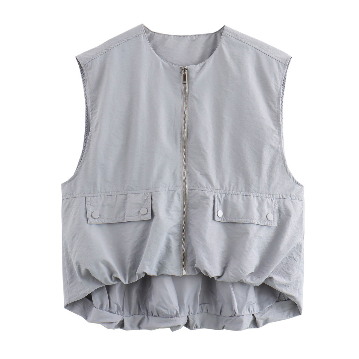 新商品の工装風のゆったりした大型版のファスナーのカーディガンの丸首のカジュアルなノースリーブのベストの女性のしわの底のベストのコート