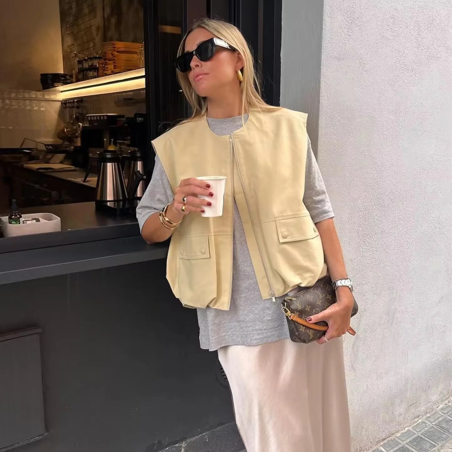 2025 春の新作ヨーロッパとアメリカのクロスボーダー婦人服ストリートファッションプリーツ裾ベスト w063 2771