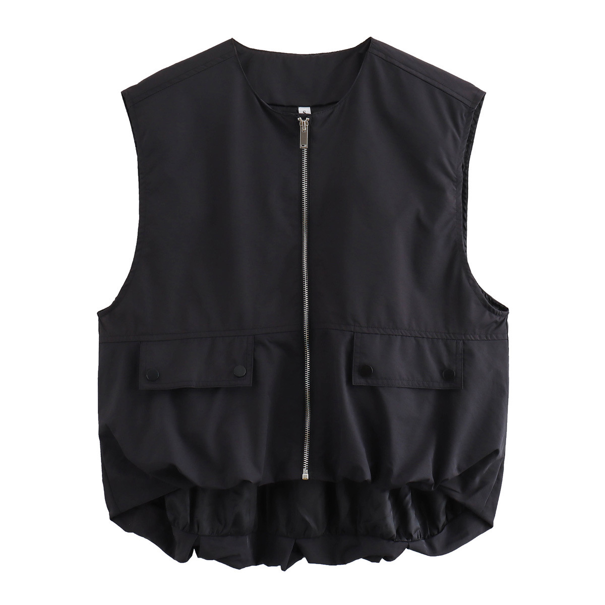 BSK&TRAF女装2025年夏季新款休闲百搭皱褶下摆口袋饰无袖背心马甲