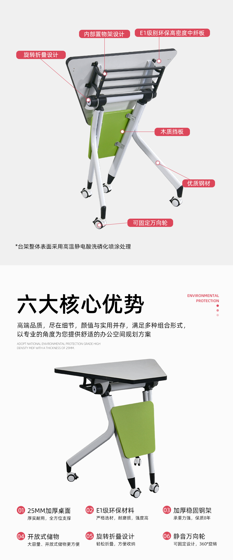 自由拼接可移动折叠会议桌培训机构辅导班单人培训桌带滚轮课桌