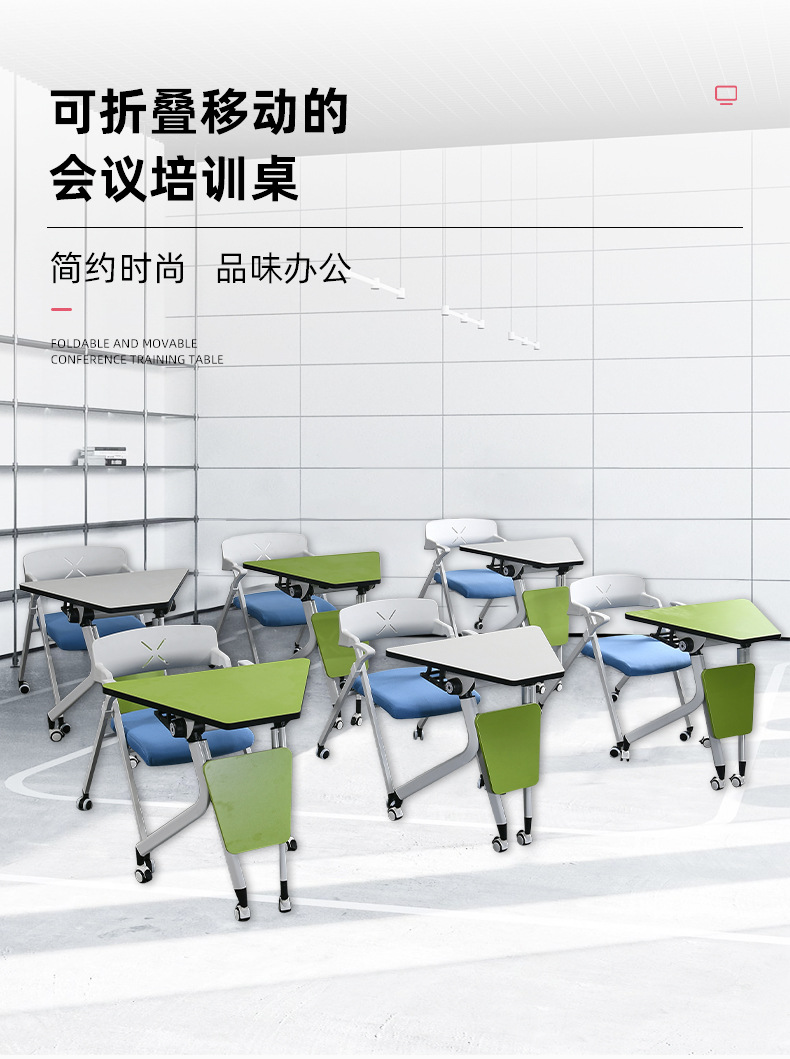 会議テーブル移動折りたたみ結合多角形テーブル実験テーブル小中学校教室折り畳み訓練テーブルと椅子の組み合わせ