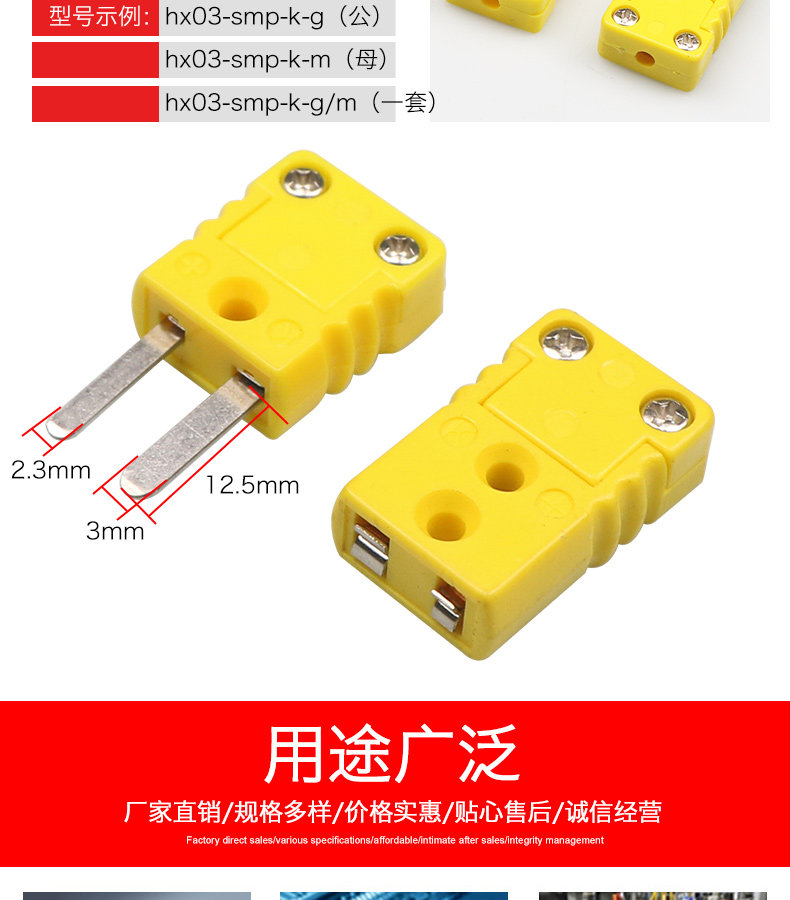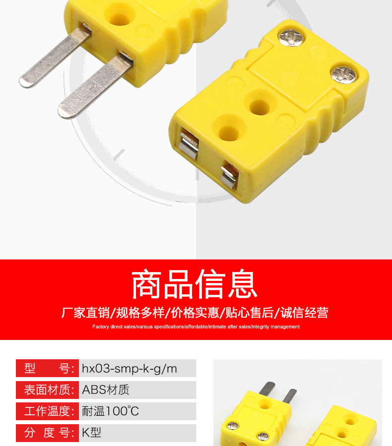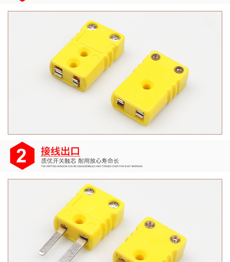 K型黄色プラグ熱電対プラグ オス・メス K型黄色プラグソケット 小型黄色プラグ熱電対コネクタ