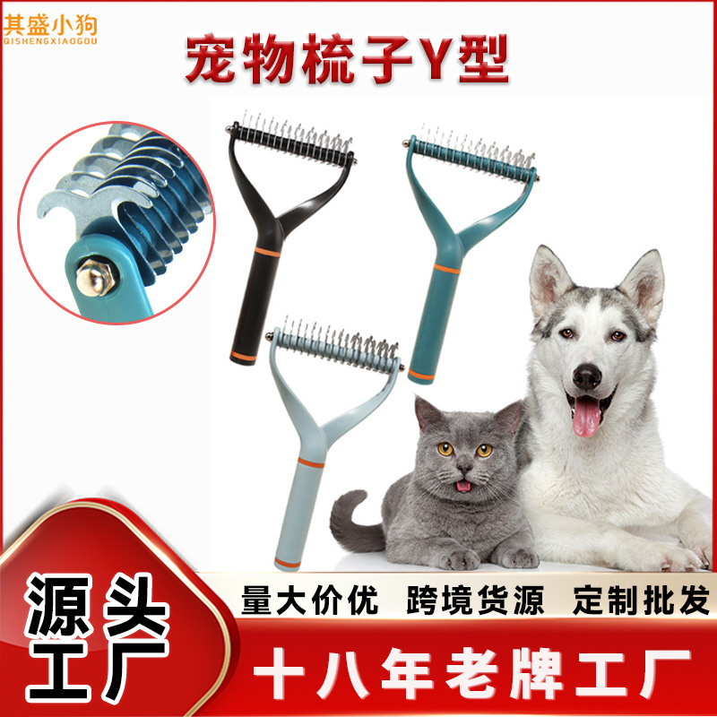 越境ペット開結櫛y型櫛毛器ステンレスナイフ脱毛櫛美容櫛猫犬櫛ペット用品