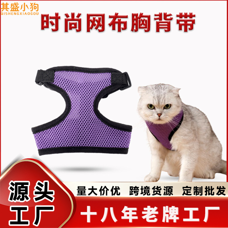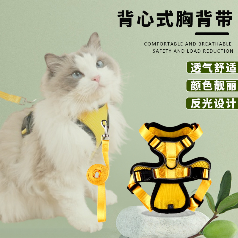 猫ネット布胸ストラップ防爆冲胸ストラップファッション猫犬ベスト式通気牽引ロープペット用品
