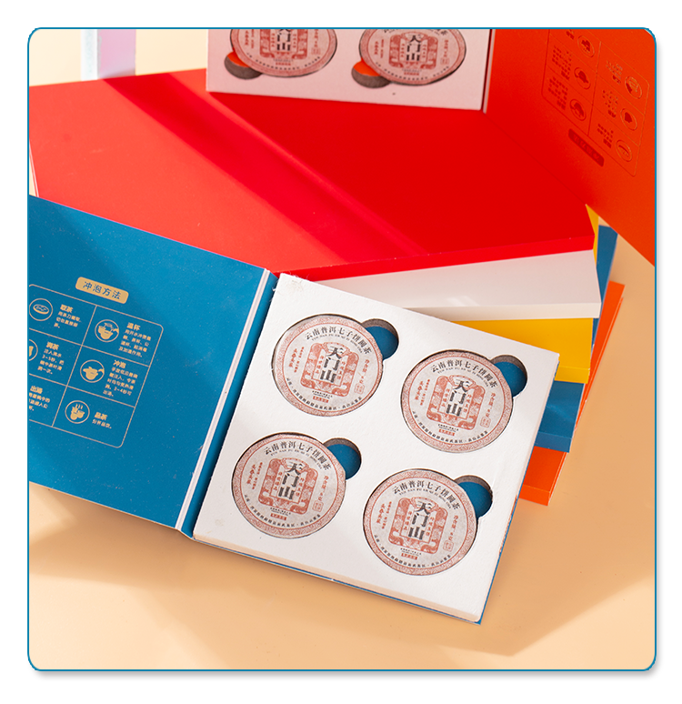 新商品の小さい丸いビスケットのお茶の包装箱の4枚の8枚の紙の箱の福鼎の白茶の陳皮のプーアルの簡易な携帯のお茶の箱