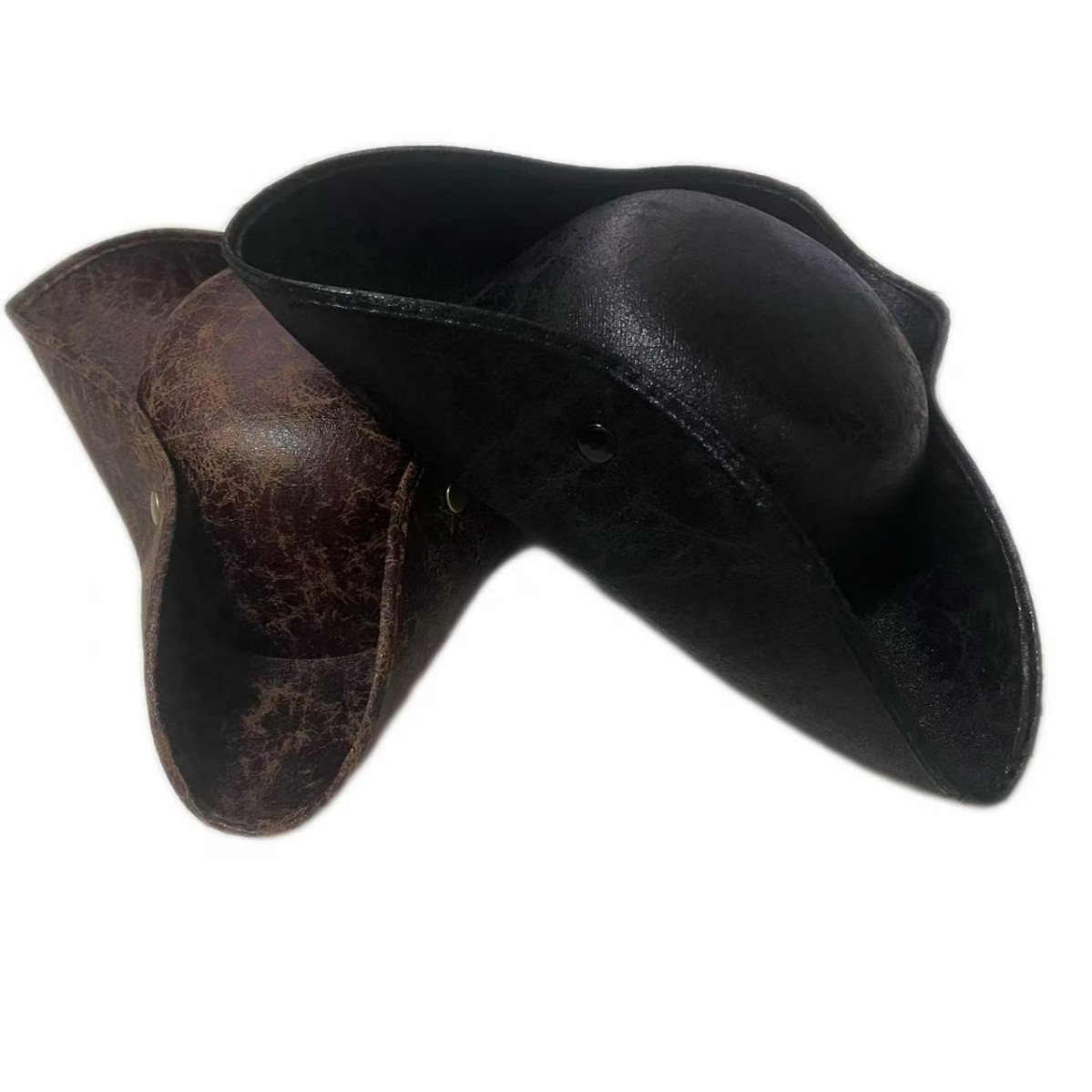 万圣节PU皮革海盗帽 加勒比海盗三角帽舞台COS海盗杰克船长表演帽