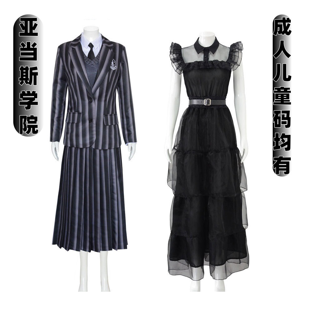 亚当斯一家星期三校服cosplay套装黑色连衣裙cos美剧女主同款服装
